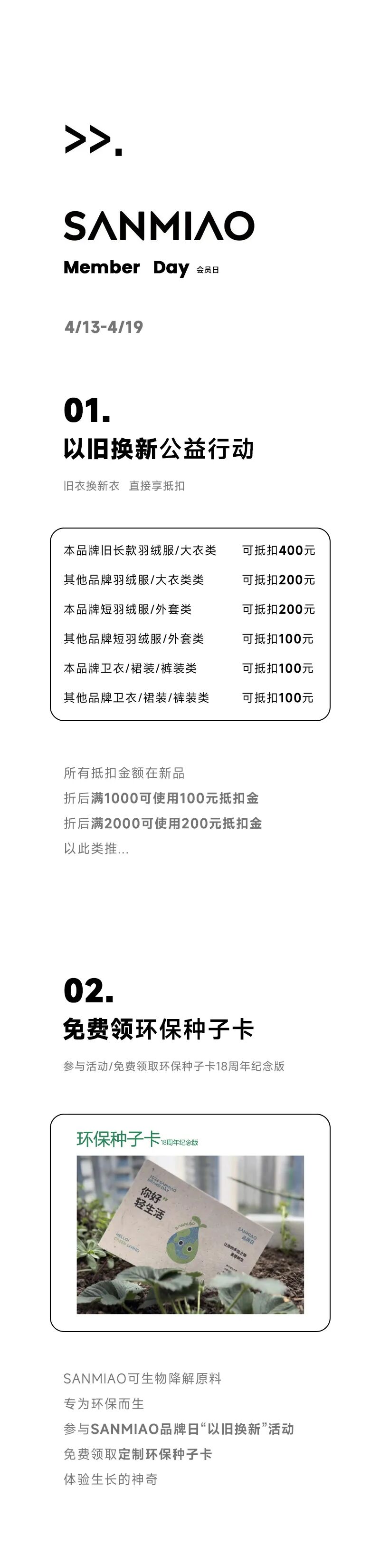 摘要:❤️SANMIAO三淼\x0d\x0a❤️4/13-4/19\x0d\x0a❤️以旧换新公益行动\x0d\x0a❤️直接享抵扣