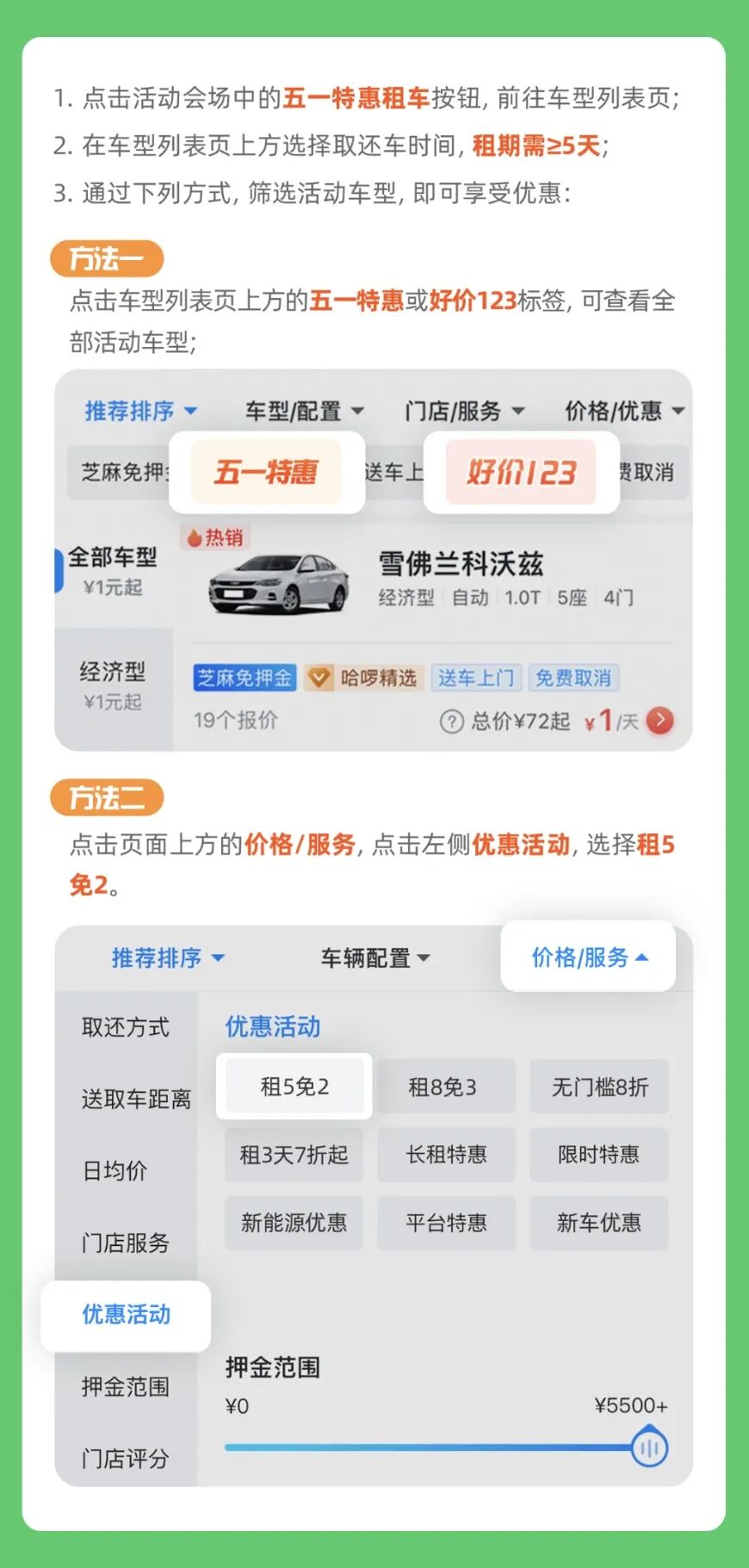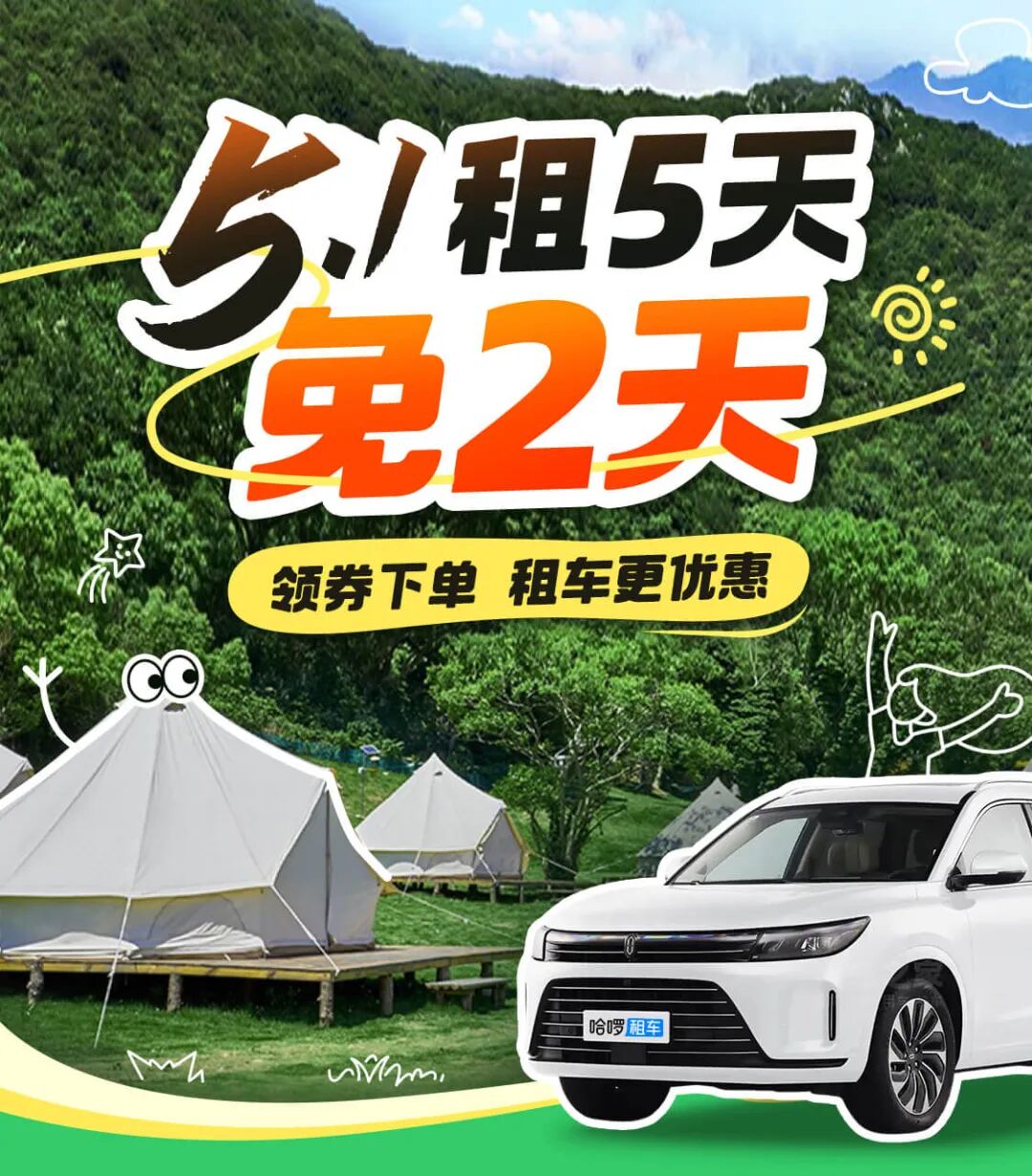 摘要:五一选哈啰租车,租5免2~