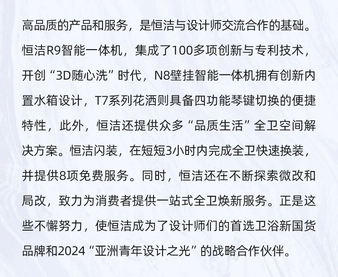 文章内容来源于公众号:恒洁卫浴,点此可查看原文,内容版权归相关企业所有,本网站仅供交流学习。若涉及版权问题或存在侵权情况,请及时与我们联系,我们将第一时间进行删除处理。