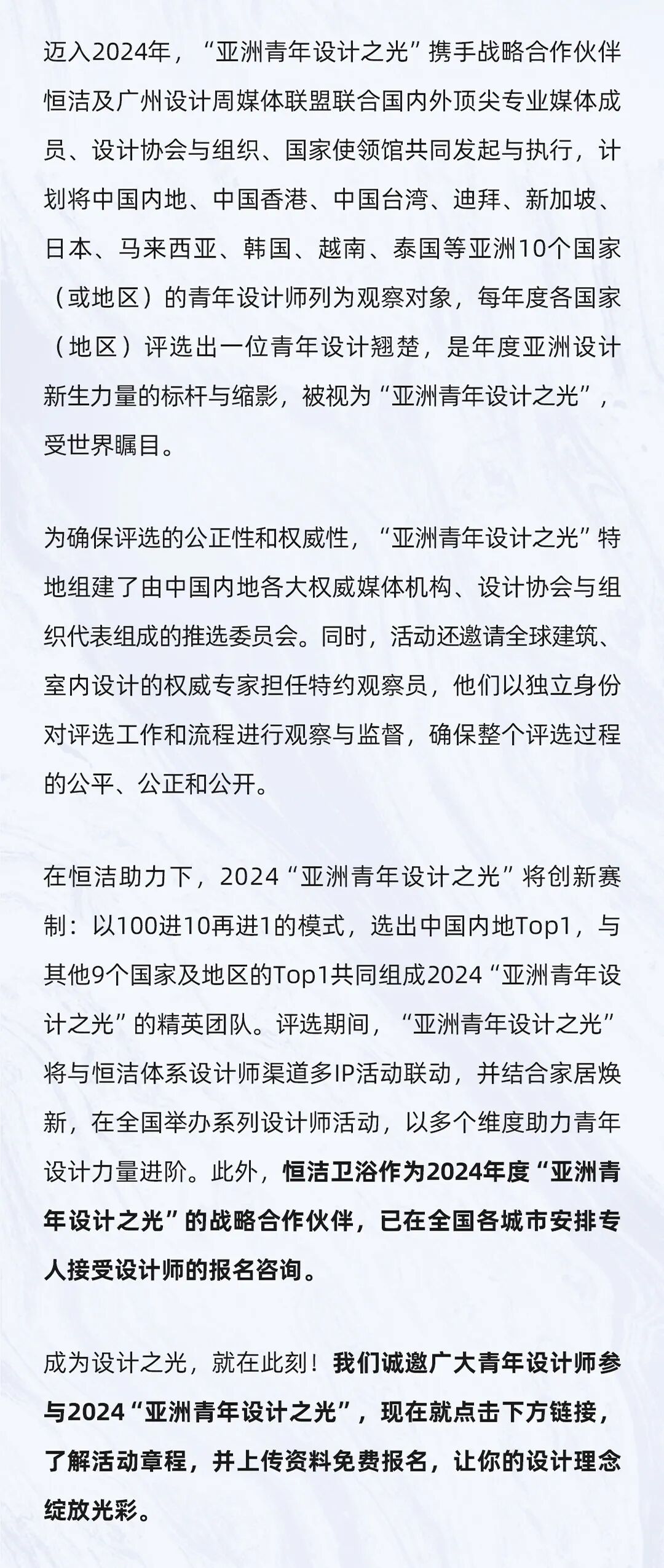 摘要:恒洁携手亚洲顶级设计盛事,为你搭建闪耀舞台