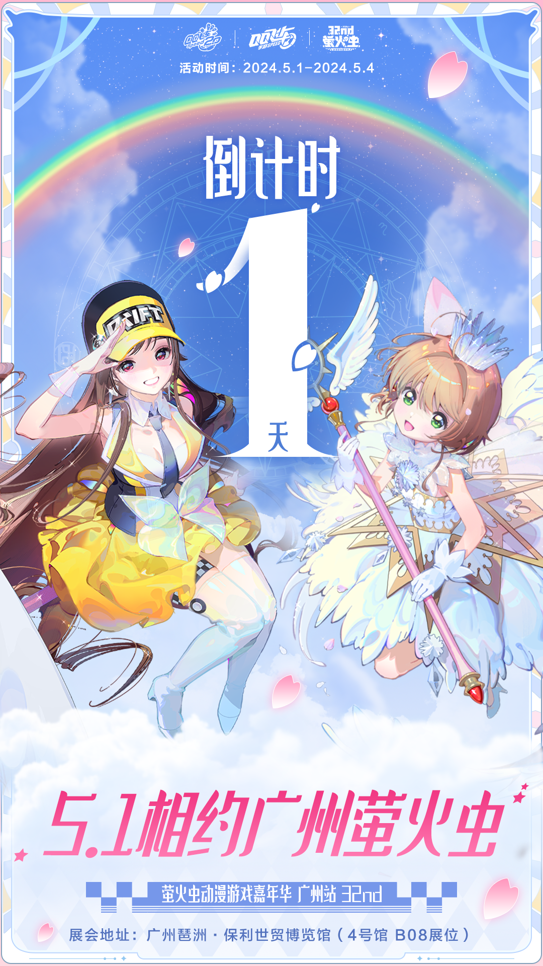 5月1日-5月4日,小橘子和小樱在广州萤火虫漫展现场等着大家~一起相约极速学院,玩转花样社团挑战,带走精美好礼吧!