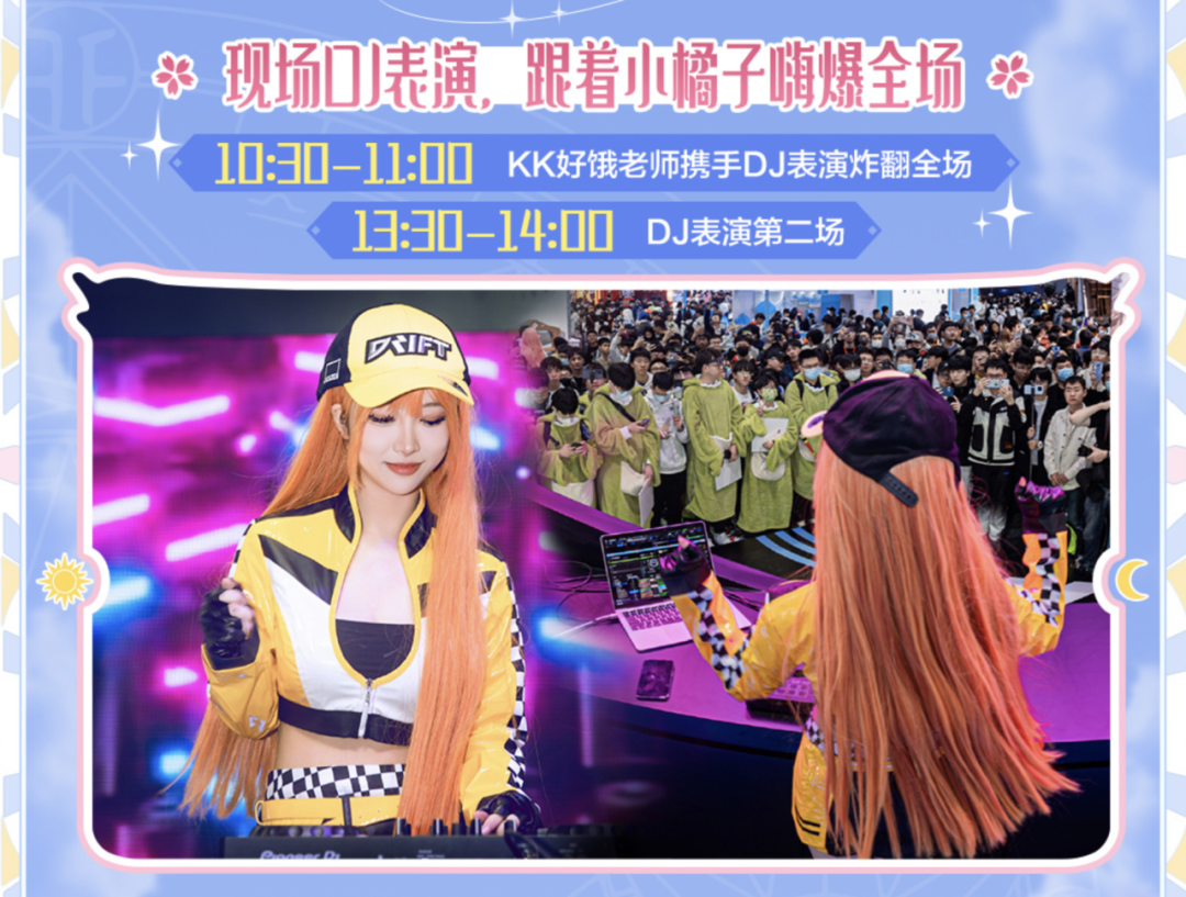 解说禅师将化身记者开启直播探班,带领车手们从第一视角感受漫展现场的浓厚氛围!还有飞车机甲天团和小橘子舞团与车手们一起欢乐舞动~5月1日,小橘子和以上嘉宾在广州萤火虫漫展现场等你哟!