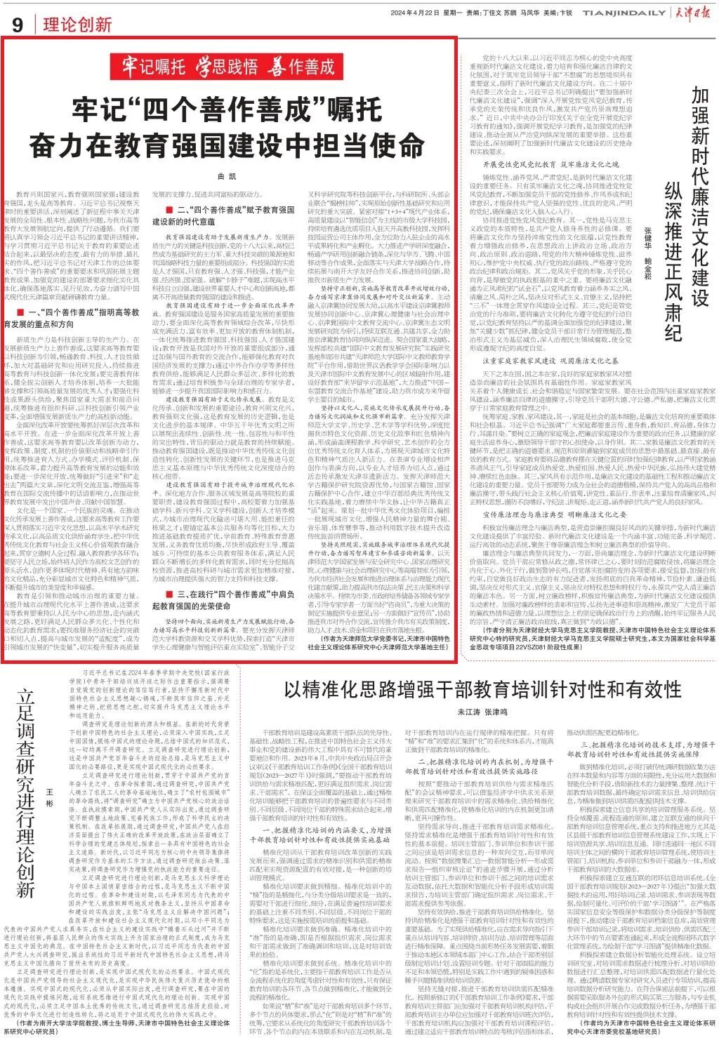 2024年4月22日《天津日报》 第9版刊载了天津师范大学党委书记、天津市中国特色社会主义理论体系研究中心天津师范大学基地主任曲凯的理论文章《牢记“四个善作善成”嘱托 奋力在教育强国建设中担当使命》。一起来学习吧。