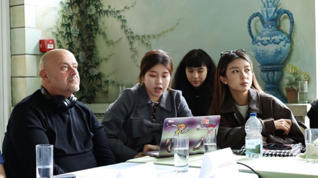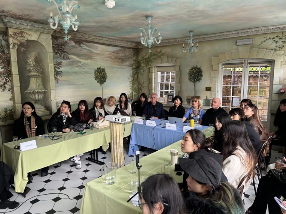 中央美术学院设计学院时装设计创建人、学科带头人、教授、博士生导师、时装艺术国际同盟(IFAN)主席吕越,中央美术学院设计学院时装设计方向召集人、讲师余一萌,英国伦敦艺术大学中央圣马丁本科时尚课程(BA Fashion Programme)负责人莎拉·格雷斯蒂(Sarah Gresty),英国伦敦艺术大学中央圣马丁本科制版(BA Pattern Cutting)高级讲师路易斯·卢伊佐(Louis Loizou),英国伦敦艺术大学伦敦时装学院时尚设计与技术女装(MA Fashion Design & Technology Womenswear)前研究生课程主任奈吉尔·卢克(Nigel Luck),中央美术学院设计学院数字技术与时装艺术方向博士生黄斯赟、王欣源及英国外出实践一行全体本科生参会。中英双方发言人围绕当下时尚产学研领域的现状与问题、创新与局限、未来的发展方向与潜力进行了热烈的讨论。