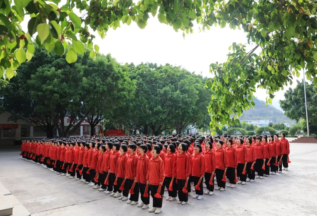 整齐划一的红色校服,整齐划一的齐耳短发,整齐划一的铮铮誓言……一张张青春洋溢的笑脸,一双双渴望求知的眼睛,像一朵朵初绽的“红梅”,迎着初升的太阳,充满了对未来的美好向往和憧憬。