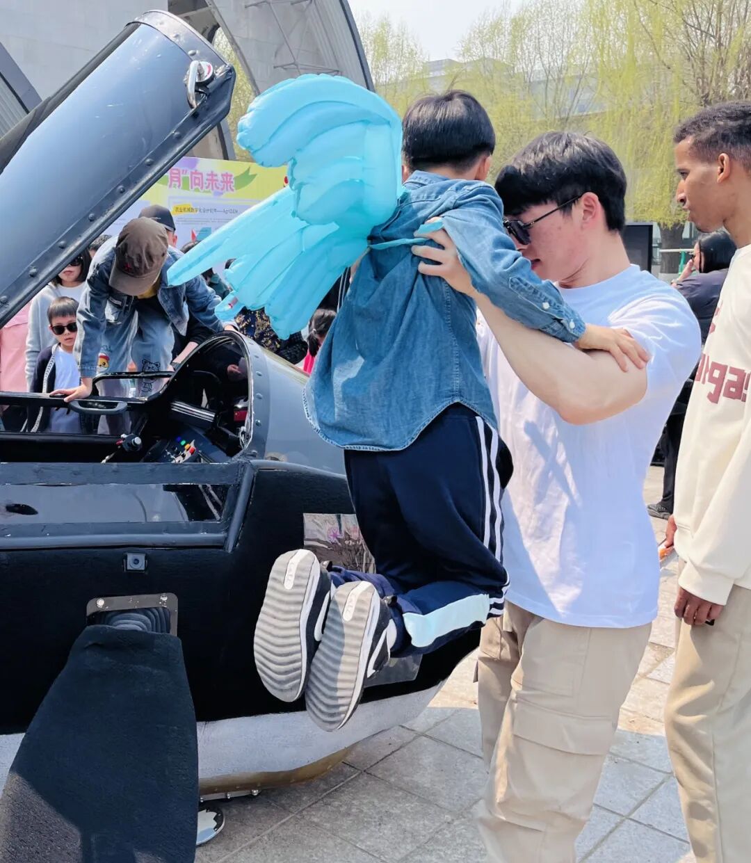 如果以更高的视角俯瞰文化节中杏花盛放的大道,会发现,繁花之下的人群流向——“大学生科技创新作品展览及体验区”总是围绕一群人,小朋友、大学生还有好奇的热情市民……拍照打卡,不再是最主要的行动逻辑。