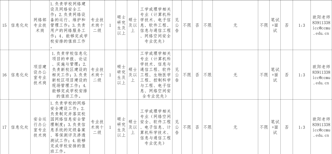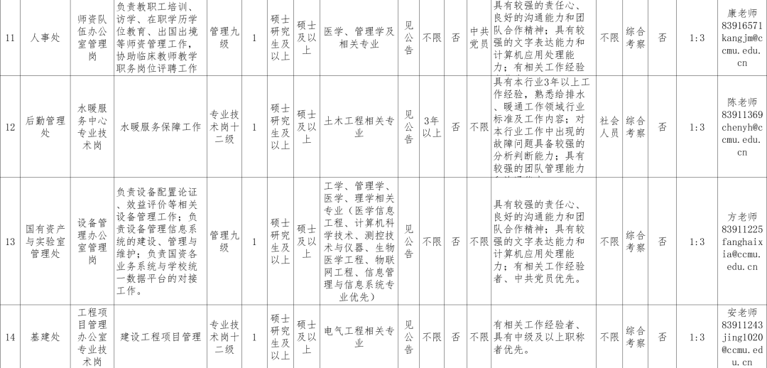 陈老师,010-83911210,邮箱:rsccx@ccmu.edu.cn