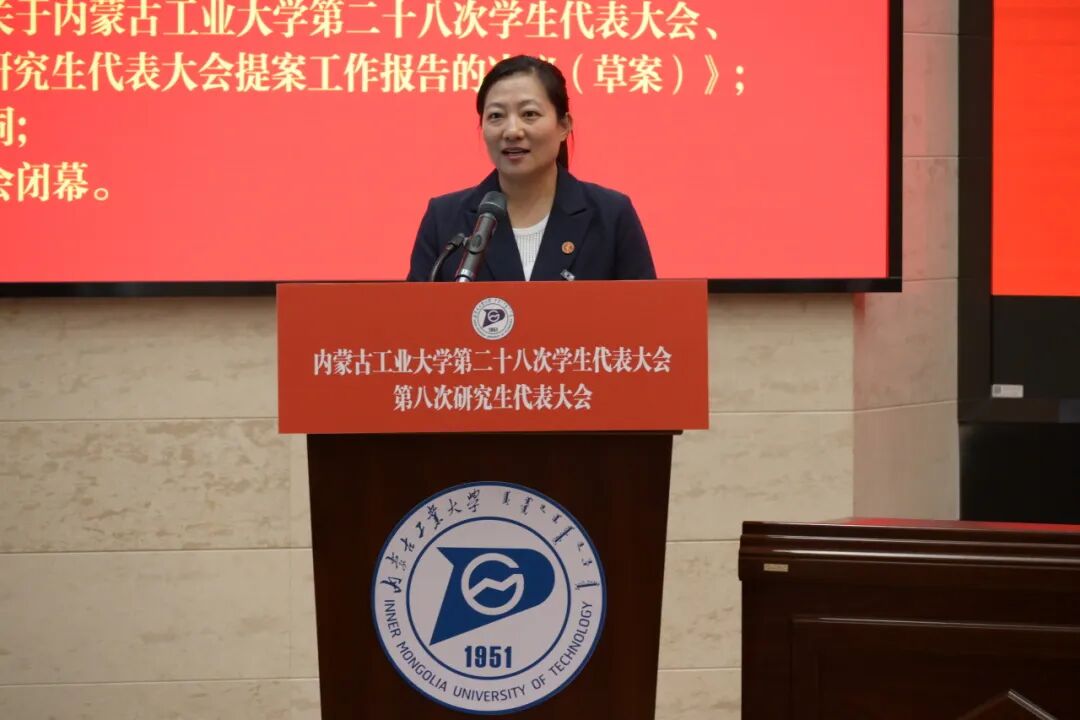 凝心聚力新时代,团结奋斗新征程。内蒙古工业大学第二十八次学生代表大会、第八次研究生代表大会是在学校上下深入学习贯彻党的二十大精神之际召开的一次青春盛会。本次学生代表大会是一次高举旗帜、凝聚力量、求真务实、开拓创新的青春盛会,充分展现了我校青年学生朝气蓬勃、开拓进取的良好精神风貌,对于开创我校学生会工作新局面具有十分重要的意义。我校广大团员青年将以本次会议的召开为契机,自信自强、守正创新、踔厉奋发、勇毅前行,团结引领和服务广大青年成长进步,在实现中华民族伟大复兴中国梦的进程中书写青春篇章。