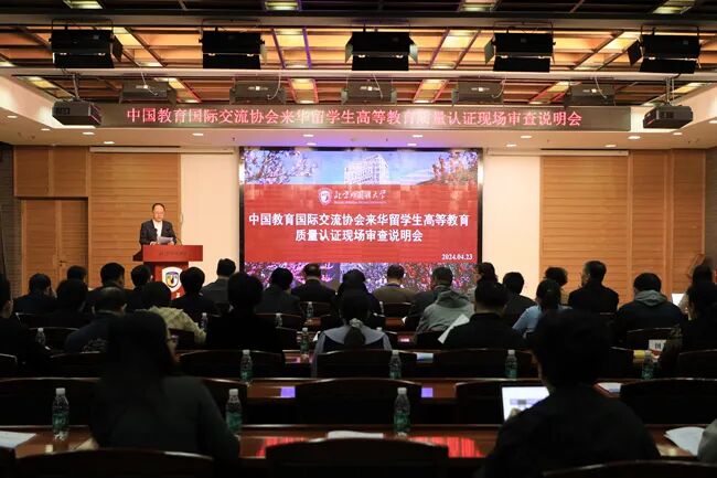 4月23日至24日,北京外国语大学顺利完成中国教育国际交流协会来华留学生高等教育质量认证现场审查工作。中国教育国际交流协会秘书长杨军,由南京大学教授、中国高等教育学会外国留学生教育管理分会副理事长程爱民带队的认证专家组,北外全体在京校领导出席现场审查工作会议。说明会由党委副书记、副校长贾文键主持。