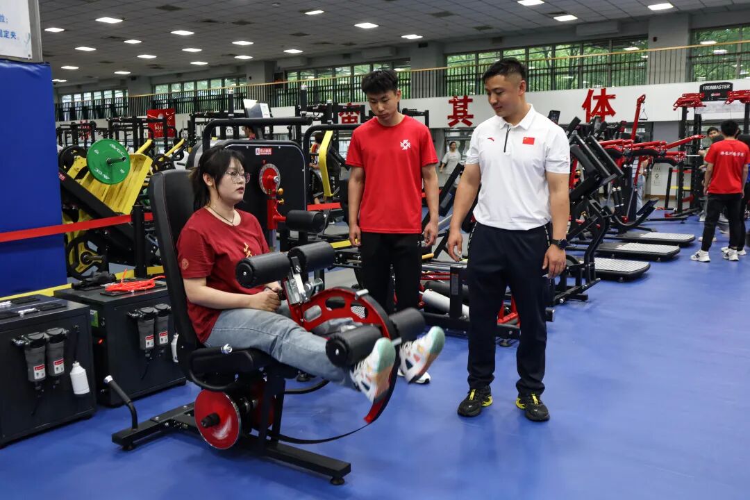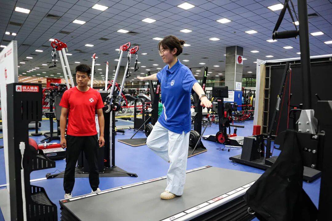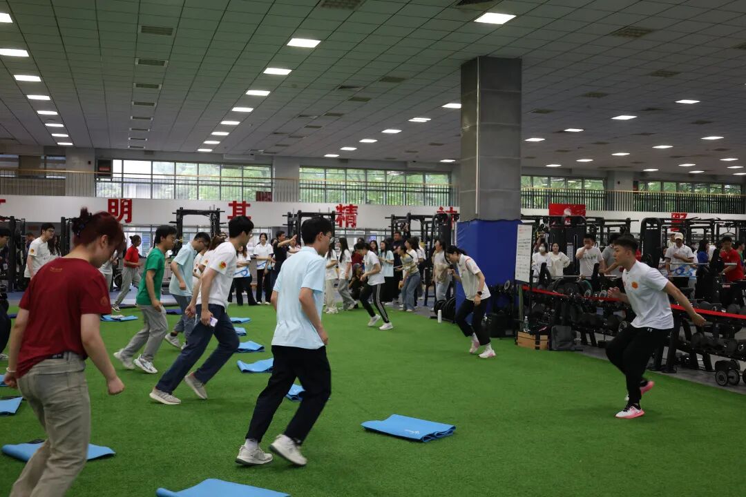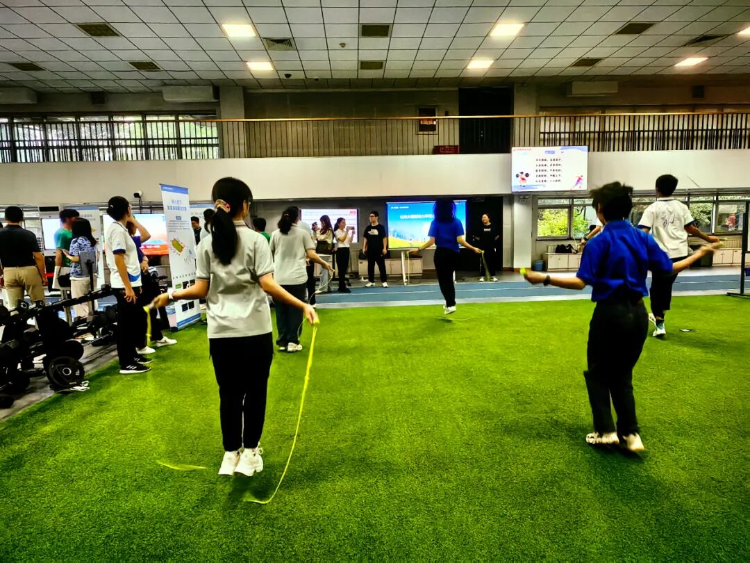 网球综合馆的健身区域设置了体能挑战赛体验区和功能性训练体验区,在志愿者同学的讲解指导下,参与活动的师生积极参与体验,现场气氛热烈。