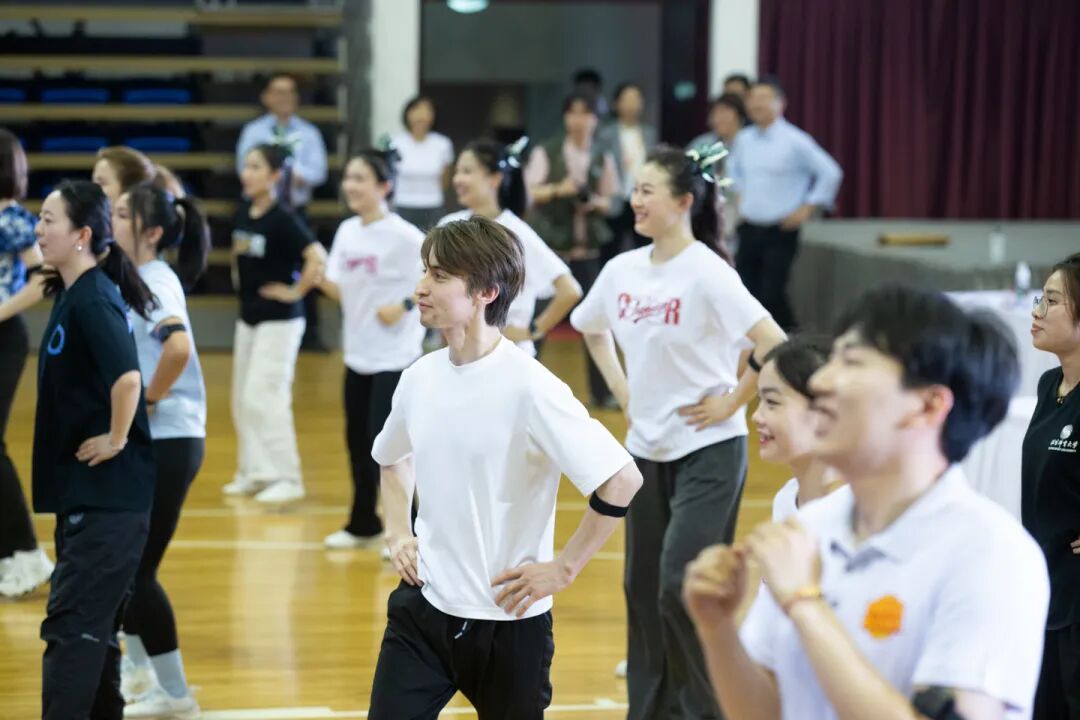 启动仪式的最后是校园“趣”运动体验环节。北京体育大学艺术学院健美操教师、国家健美操队总教练王宏带领现场师生以数字健身韵律操进行热身。![]()