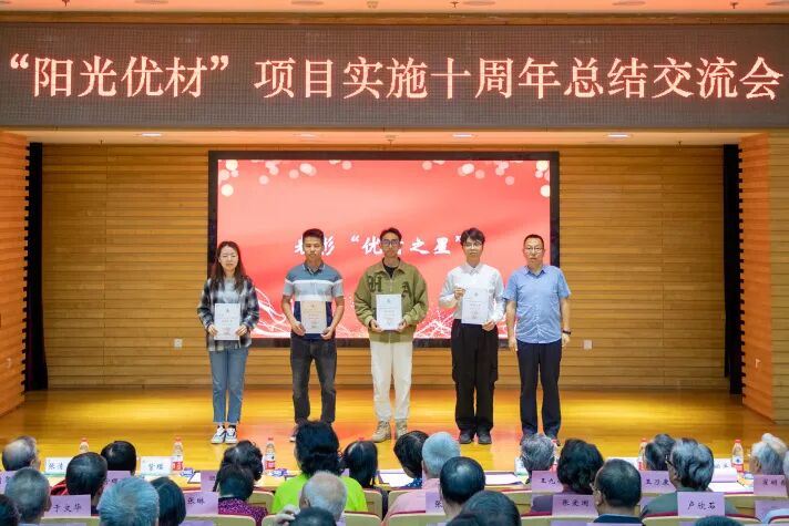 会议表彰了“阳光优材”项目突出贡献单位和个人、“一院一品”资助育人品牌项目优秀结项学院和首届“优材之星”。