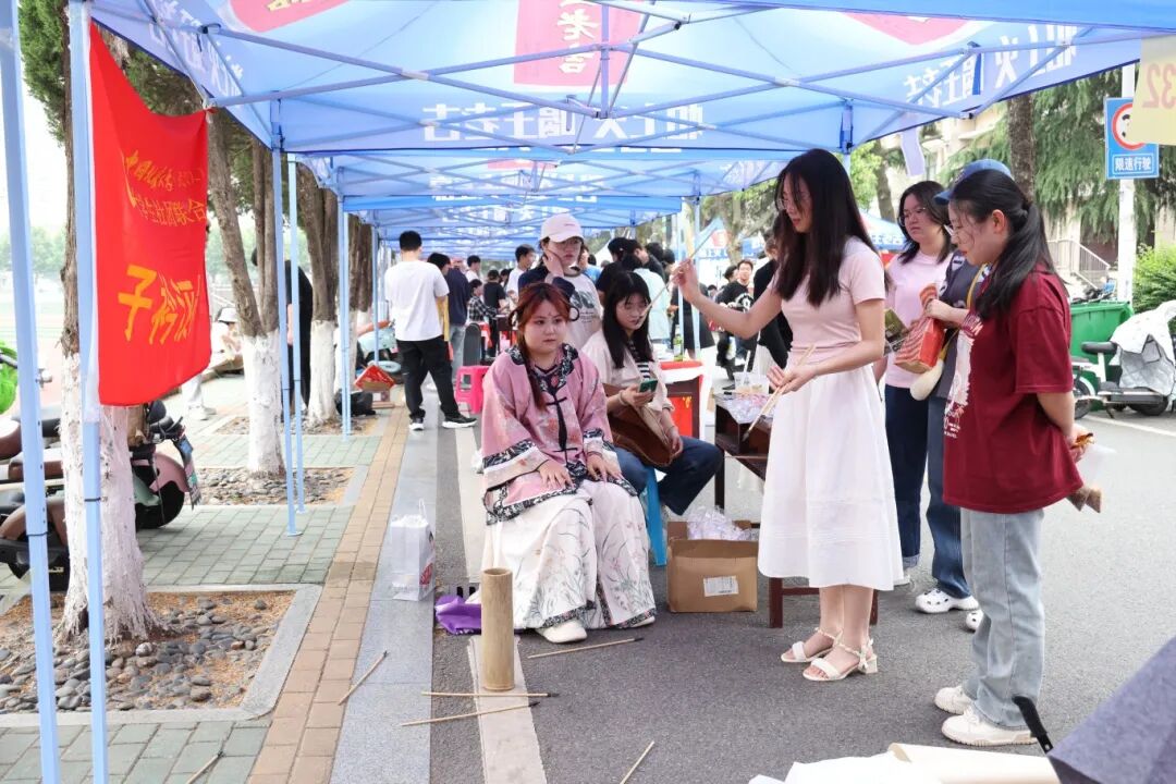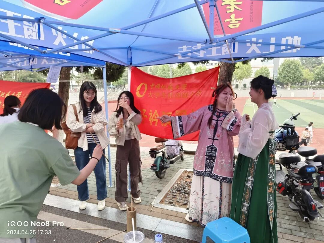 外国语学院杨晨同学说:我们社团的关键词是美学追求、文化传承、开放包容。我们身着汉家衣裳,秉承着保护中华民族传统服饰的宗旨,让独属于我们的传统文化走向世界。我们社团平时有许多活动,比如:春灯节、花朝节、妆造沙龙。同袍们,可以在活动中认识志同道合的朋友,在妆造学习中体会中华文化的博大精深!