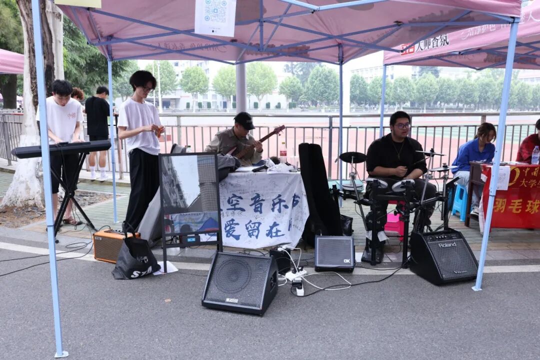 李四光学院王子铭同学说:欢迎意趣相投的同学们加入星空音乐社共同学习、交流和创作音乐。我们主要是以乐队的形式进行演出。每个成员发挥自己的特长和才能,共同创作和演奏音乐,培养团队合作精神和沟通能力。丰富生活的同时传播音乐文化。每周六我们会在西区操场演出,各大演出也会出现我们的身影。