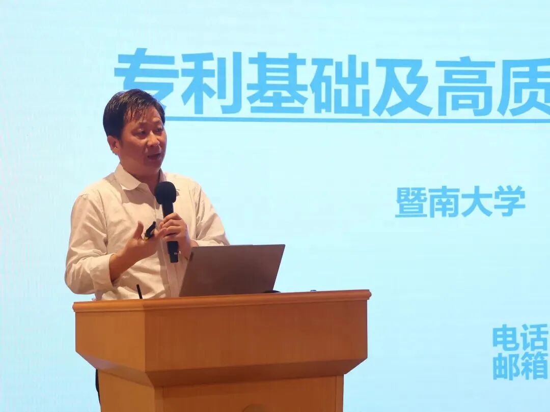本次活动还邀请了暨南大学彭玉勇副教授进行了题为“专利基础及高质量撰写与布局”的讲座。在随后的互动交流环节中,师生们就知识产权的保护展开了热烈的讨论。