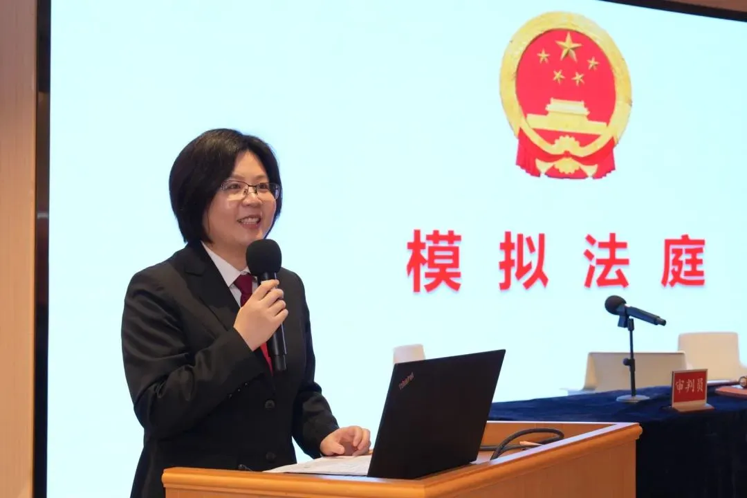 随后,在南沙法院法官的专业指导下,我校师生进行了一场技术合同纠纷案件庭审的模拟法庭活动,徐智媛法官对本次庭审进行了点评。参与者通过亲身演练,深刻体会到司法保护在知识产权保护中的重要性,也让现场观众对知识产权法律程序有了直观的认识。