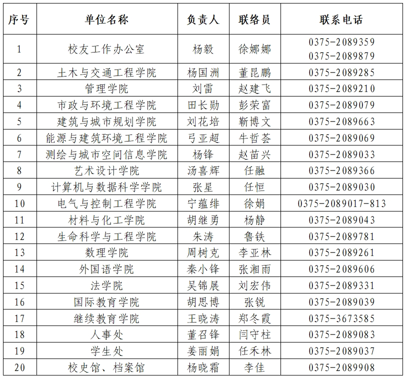 1.校友工作联络人及联系方式