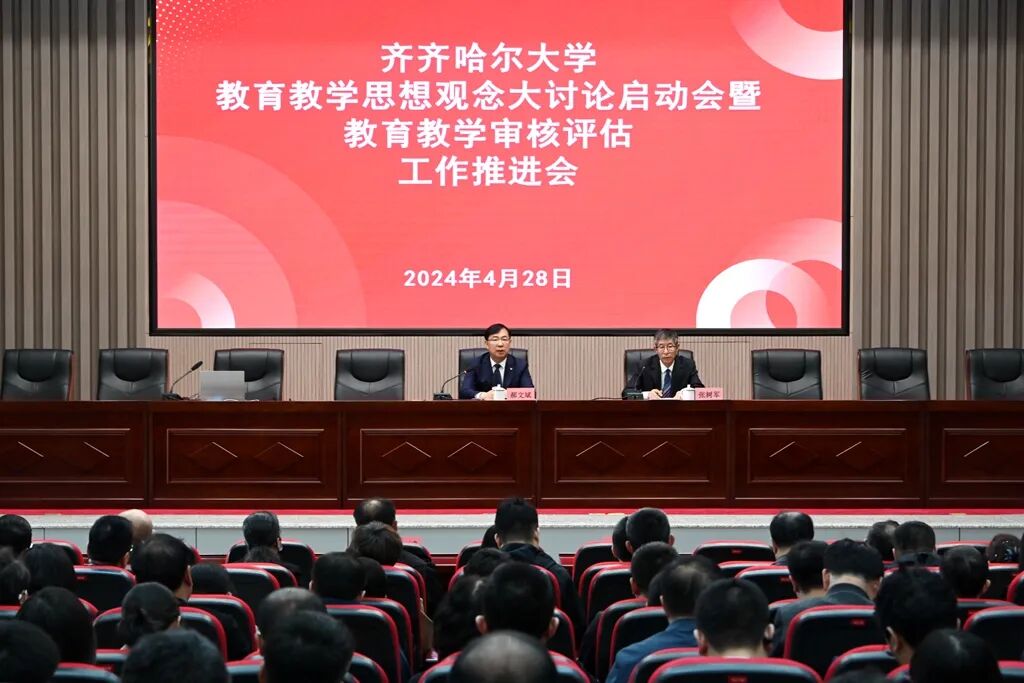 校长郝文斌在会上作了讲话,要求全校师生员工统一思想、凝心聚力、真抓实干,以高质量的审核评估迎评工作为重要抓手,进一步夯实本科教学基石基础地位,持续推动学校本科教育教学高质量发展。郝文斌就工作落实提出三点要求:一是全面总结前期工作成果,进一步明确自评自建工作重点。深入总结学校自2023年下半年全面启动审核评估迎评工作以来的工作成效,分析工作中存在的问题和不足,在前期工作基础上,进一步明确下步推动审核评估的迎评工作重点。二是以教育教学思想观念大讨论为契机,推动学校本科教育教学改革。进一步增强推进建设有特色高水平应用型综合大学的使命感、责任感、紧迫感,牵住推动学校高质量发展“牛鼻子”,打好解放思想“组合拳”,清除制约学校高质量发展“绊脚石”,推动学校教育教学工作落地落实、高质高效。三是明晰工作着力点,以有力有效举措高质量完成迎评任务。牢牢把握“五个坚持”的基本遵循,精准把握审核评估“五个方面”新变化,树立正确评估价值取向,以评估政策保障教育教学改革,强化迎评促建工作组织领导,以善作善成、卓有成效的迎评工作推动学校内涵建设和高质量发展行稳致远。