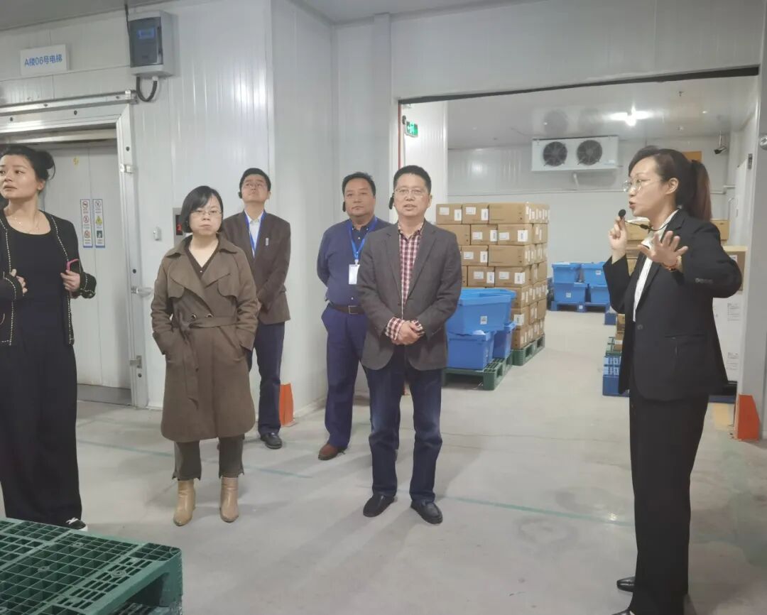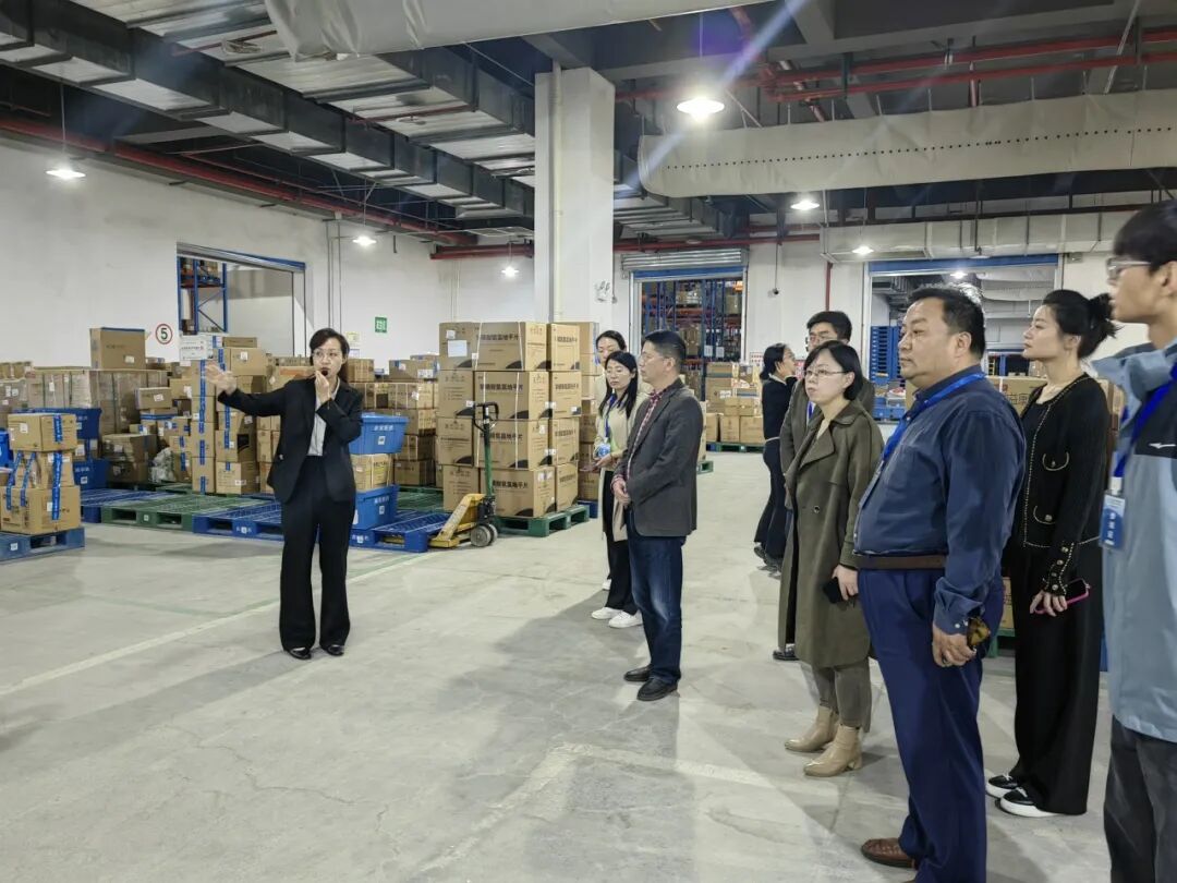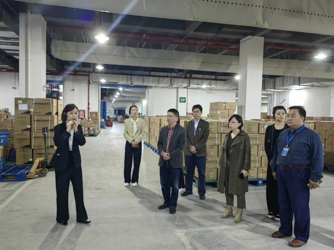 康捷物流总经理姚霞对戴金跃一行的来访表示热烈欢迎,带领参观了南京医药中央物流中心的立体库、全自动多穿库、全AGV冷库以及全AGV异型库等物流配套设施,介绍了单位的发展历程、党建融合和企业文化,和企业在智慧物流建设、物流网络建设、物理管理创新与服务提升等领域取得的成就。随后,双方开展了座谈交流会。