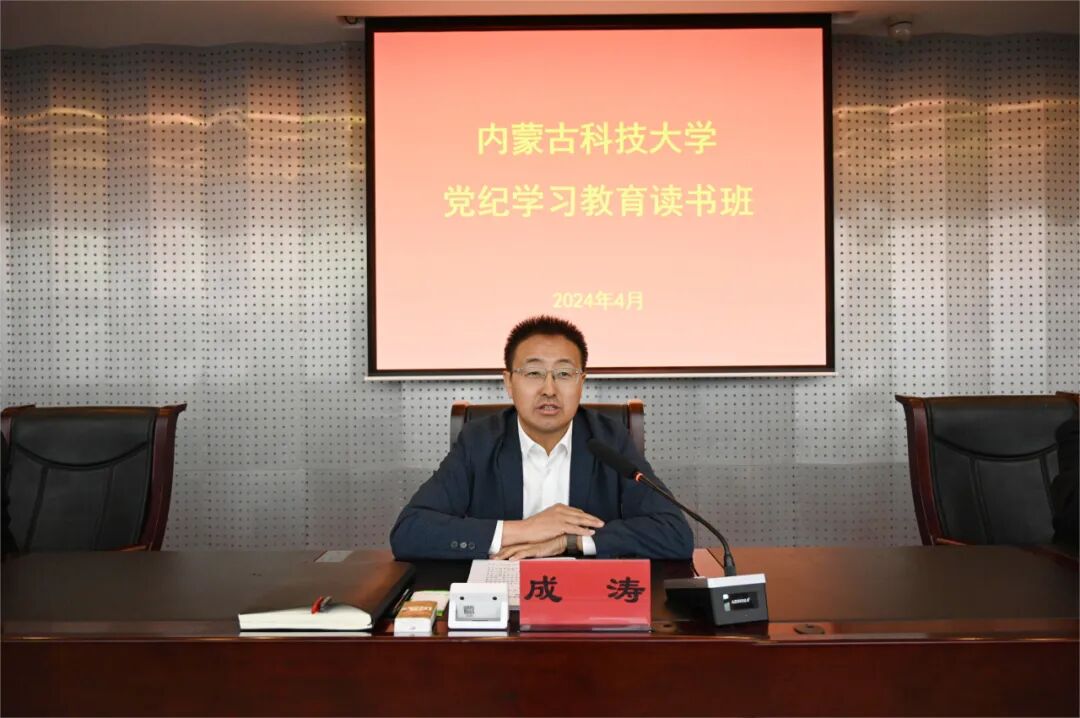 4月28日至29日,内蒙古科技大学举办党纪学习教育读书班。读书班以专题党课、集中学习、专题辅导、研讨交流和个人自学相结合的方式进行,全面、深入地学习领会新修订的《中国共产党纪律处分条例》。校党委书记成涛讲授纪律党课,党委副书记杨建林主持开班式并讲话,全体校领导、正副处级干部参加学习。