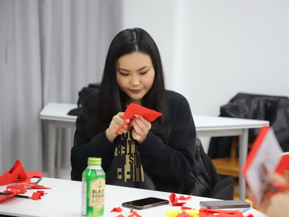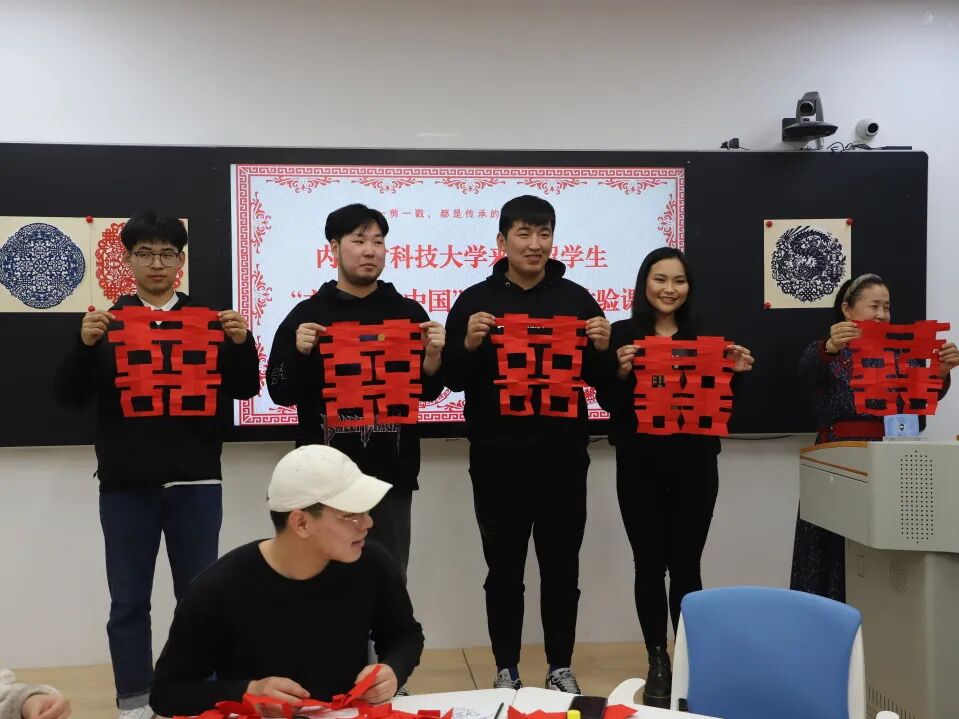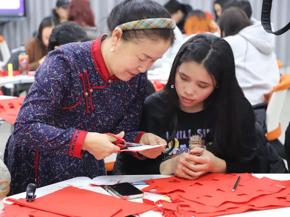 学校邀请了非物质文化遗产传承人乌日嘎为我校来华留学生进行专题授课。乌日嘎介绍了剪纸艺术的历史渊源、种类形式、民间剪纸地域特点,重点阐述了剪纸创作方法,并带领留学生亲手体验了“纸上飞花”的艺术之美。在乌日嘎老师手把手的教学下,留学生用剪刀,剪出一幅幅立体“春”字、“囍”字以及象征着吉祥、美好的中国结。在这个过程中,学生领略到剪纸艺术的独特魅力,感受到中华优秀传统文化的深厚底蕴和无穷魅力。