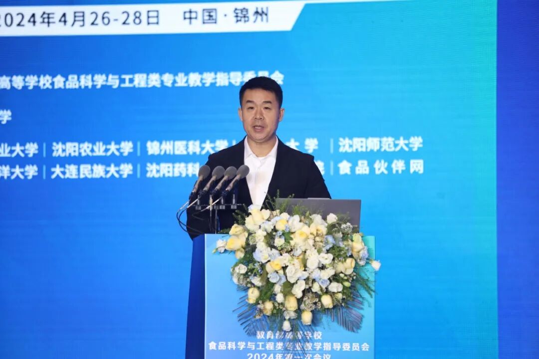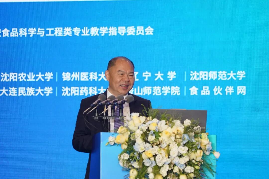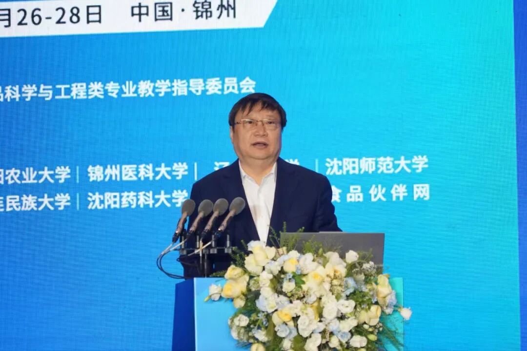 辽宁省教育厅副厅长张国林致辞,他代表省教育厅对与会代表表示欢迎,介绍了辽宁高等教育的规模与布局及在双一流与ESI学科建设、一流专业与一流课程建设方面取得的成绩,希望辽宁省开设食品类专业的高校能根据本省食品产业现状调整专业与学科结构,服务辽宁食品产业高质量发展。