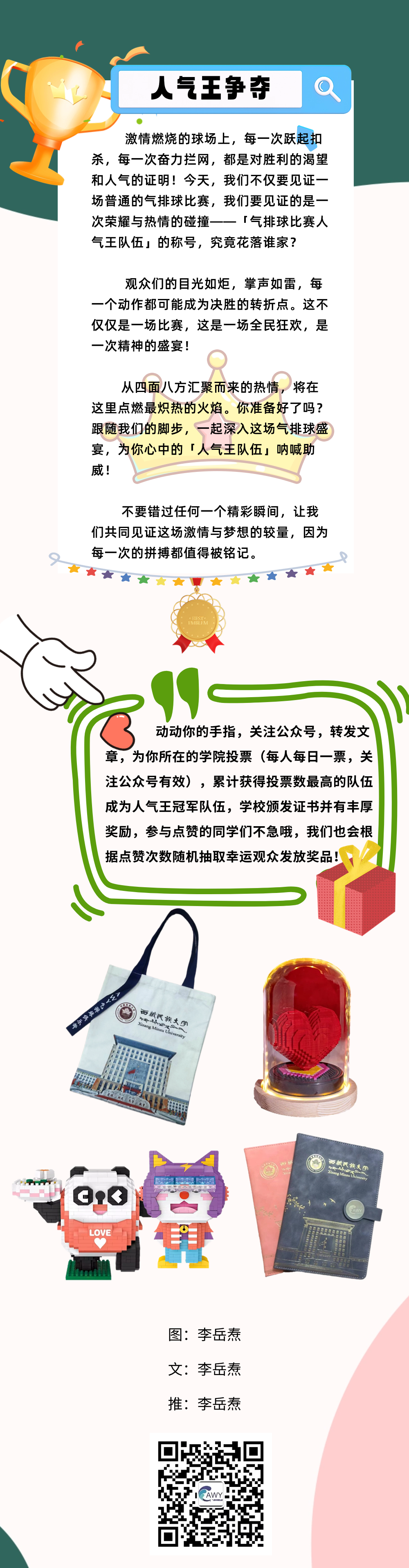 “大学生创新创业杯”气排球竞赛之人气王队伍之争,快来给你的学院投票吧!!!