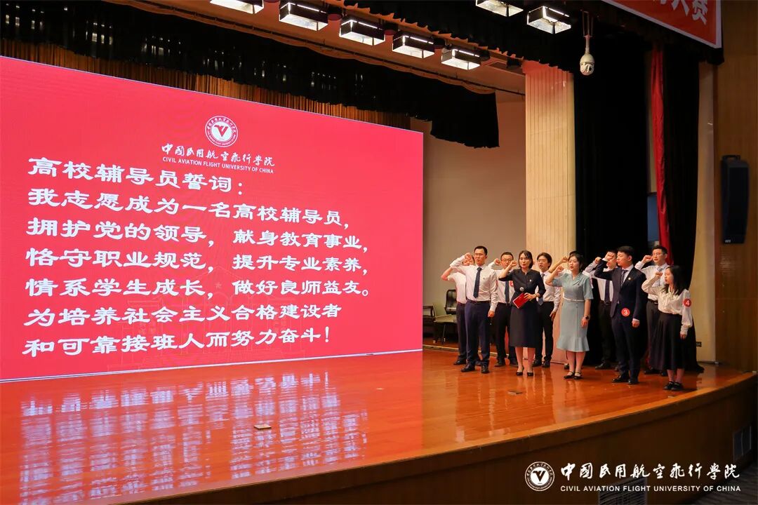 “我志愿成为一名高校辅导员,拥护党的领导,献身教育事业……”在比赛现场庄重的辅导员宣誓仪式中,铿锵有力的誓词声彰显了中飞院辅导员们全心全意服务学生、恪守职业操守、奉献教育事业的初心。相信在未来,学院这支队伍中的每一位都将继续秉持着爱心、耐心和责任心,为学生的成长和发展保驾护航,助力他们迈向更加辉煌的未来。