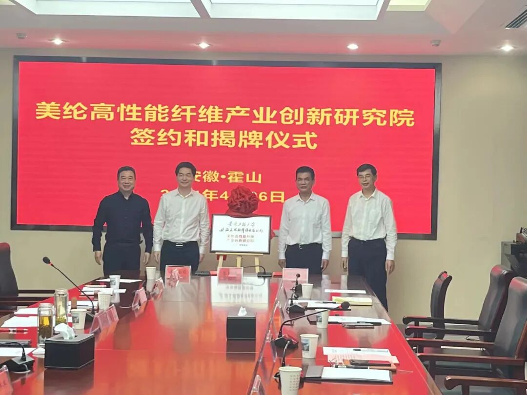 为深化校企产学研合作,深入推进校企融合,4月26日,学校与安徽美纶新纤维有限公司共建的“美纶高性能纤维产业创新研究院”签约暨揭牌仪式在霍山县举行。