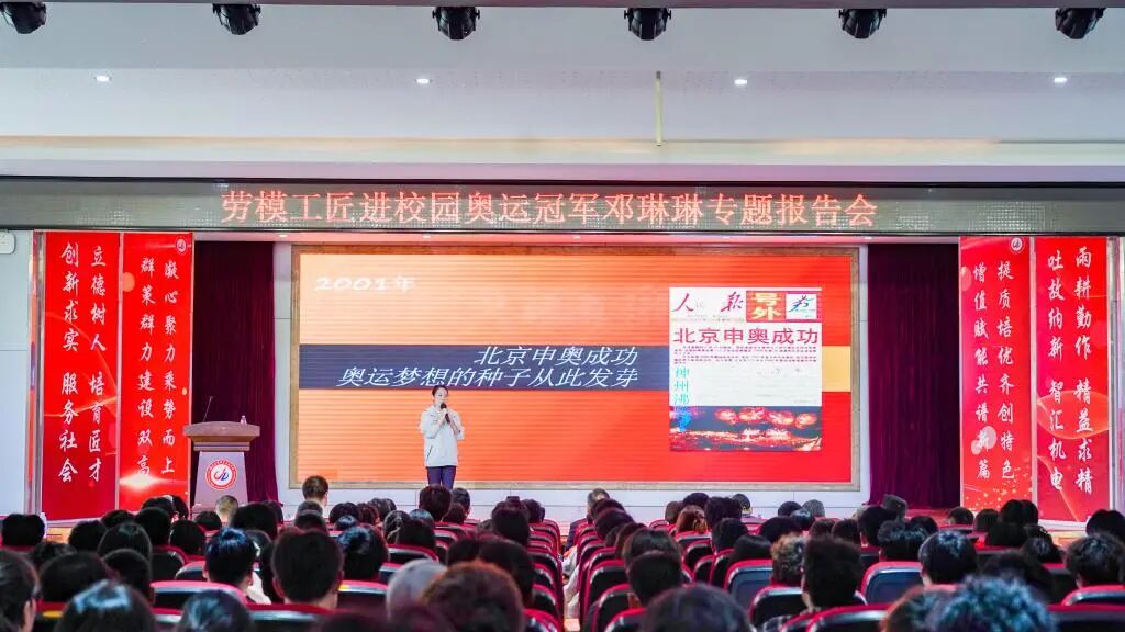 最后,姜绳副院长作总结讲话。他指出,邓琳琳在体操领域,以卓越的运动成就,成就了个人梦想和自我价值,更为祖国赢得了荣誉,获得了世界的瞩目;同时,她顽强拼搏的精神、永不言弃的斗志,激励并正在激励着一代又一代青年人。他向同学们提出三点希望:一是希望同学们传承奥运精神,做胸怀理想的追梦人,从冠军故事中汲取力量,积极传承弘扬奥运精神,敢于迎难而上,始终坚定目标,朝着梦想前进;二是希望同学们热爱体育运动,做体魄强健的好青年,培养良好的运动习惯和健康的生活方式,用运动来放松身心、缓解压力、增强体魄;三是希望同学们永葆奋斗姿态,做技能过硬的大工匠,保持“梅花香自苦寒来”的奋斗姿态,珍惜机遇、不负时代,练就精湛的技能和过硬的本领,争做身怀一技、令人敬仰的强者。