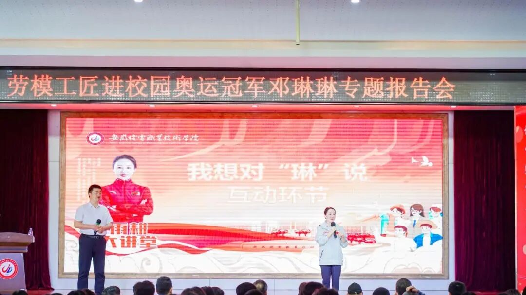 4月24日下午,北京奥运会、伦敦奥运会连续两届奥运冠军、全国青联委员、省政协委员、省青联副主席、安徽师范大学体育学院青年教师邓琳琳,射箭世界冠军、亚运会冠军顾雪宋做客“雨耕大讲堂”,为我校师生作劳模工匠进校园——《我的冠军之路》奥运冠军邓琳琳专题报告。党委委员、副院长姜绳,各相关部门领导,各二级学院党总支书记、副书记、分团委书记及学生代表400余人现场参加活动,共同对话青春、共叙成长,共赴一场激荡心灵的青春思政课。报告会由校团委、互联网与通信学院主办,互联网与通信学院党总支副书记张灿东主持了报告会。