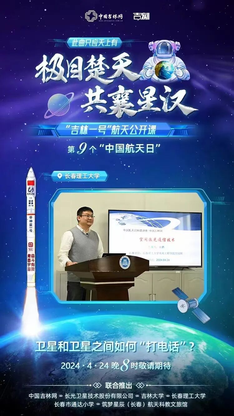 4月24日,是第九个“中国航天日”。为了纪念中国航天事业成就,发扬中国航天精神,长春理工大学应中国吉林网之邀,联合长光卫星技术股份有限公司、吉林大学、长春市通达小学、筑梦星辰(长春)航天科教文旅馆共同举办《此曲只应天上有——“吉林一号”航天公开课》。