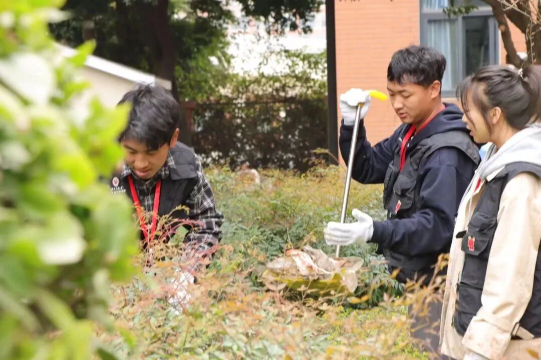 ▲为弘扬雷锋志愿服务精神,中国语言文学学院与航空港校区第三片区联合展开了“雷锋精神绿篱守 志愿除草春意浓”志愿服务活动。