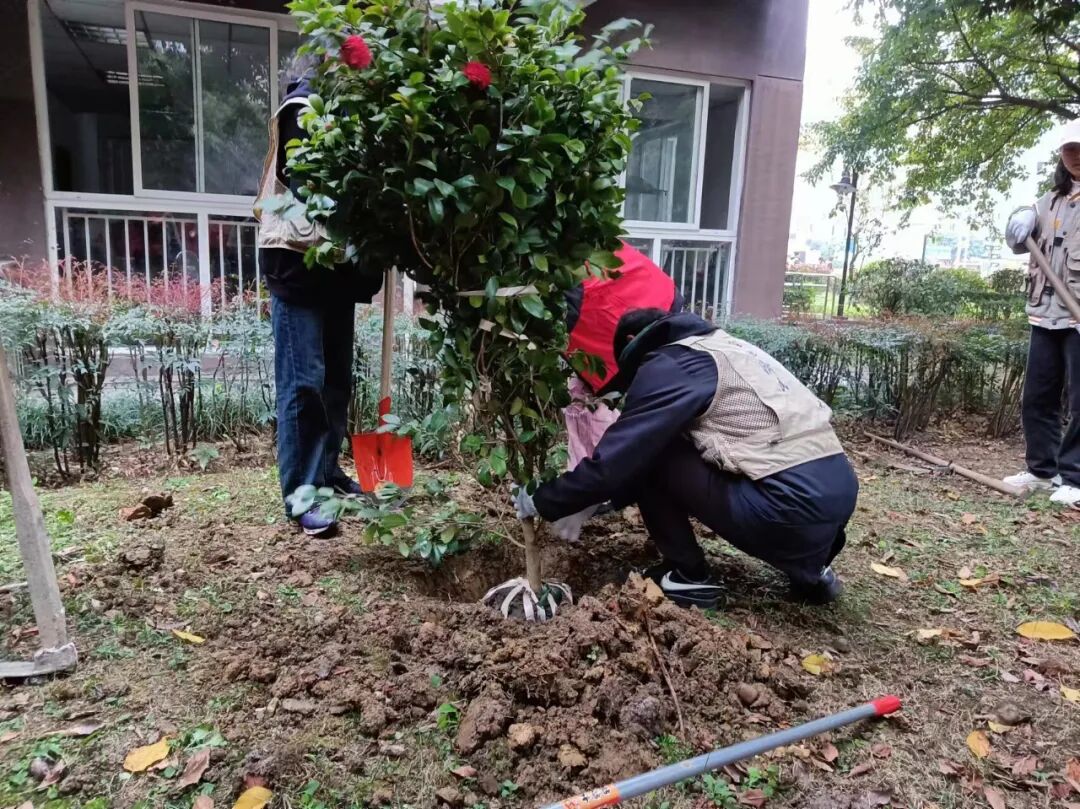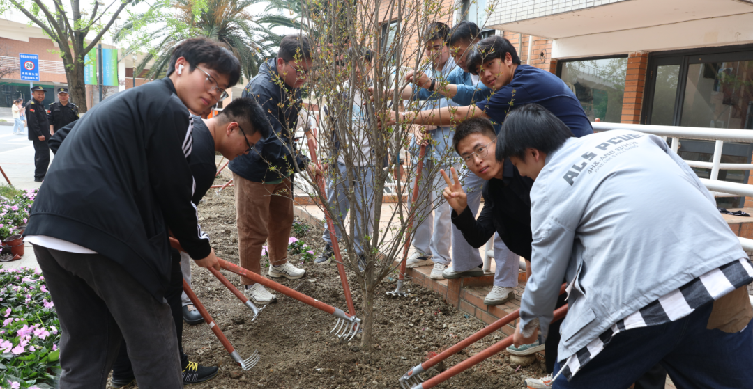 ▲用行动践行绿色发展理念,经济学院、航空港校区第六片区共同开展“铸牢中华民族共同体意识,共植民族团结林”植树节志愿活动,助力环境保护。