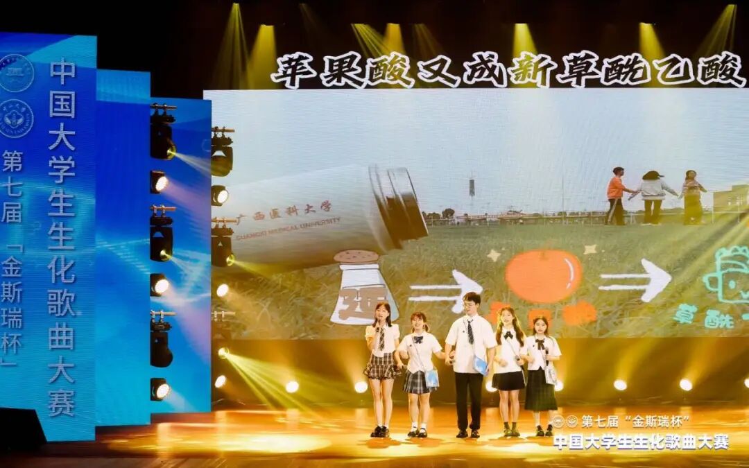 生物化学与分子生物学是在分子水平上探讨生命的本质,是一门重要的医学专业基础课程,是执业医师资格考试,研究生入学考试必考科目,但由于生化学习知识点多,教学学时少,内容抽象繁杂,学生不易理解。2021年参加探讨会时了解到中国大学生生化歌曲大赛能够激发学生兴趣,将生化知识与社会热点等有机结合起来创作歌词,通过优美的旋律达到育人的目的。我们举办了首届广西医科大学生化歌曲大赛,反响热烈,同学们积极参加,选出的2首歌曲获得全国二等奖,学生反映生化歌曲能增加学习的乐趣,更好地掌握知识点。2024年是我们第一次带学生参加线下的全国生化歌曲大赛。在这过程中,指导老师尽心尽力辅导,学生刻苦排练,不断改进,不仅考查了学生的创作能力,还考验了临场发挥,由衷地为同学们感到开心,他们太棒了!