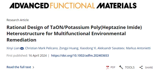 近日,我校生命科学学院青年教师练昕怡博士联合德国马克斯普朗克胶体与界面研究所国际著名材料学家Markus Antonietti教授团队与厦门大学伊晓东教授团队合作,以第一作者兼唯一通讯作者,在“多功能半导体异质结应用于新能源环境治理”领域取得重要进展,并在国际材料顶级期刊 Advanced Functional Materials (《先进功能材料》) 在线发表题目为“Rational Design of TaON/Potassium Poly(Heptazine Imide) Heterostructure for Multifunctional Environmental Remediation” (精准构建多功能氮氧化钽/钾聚庚嗪异质结在环境治理中的应用)的研究论文。1