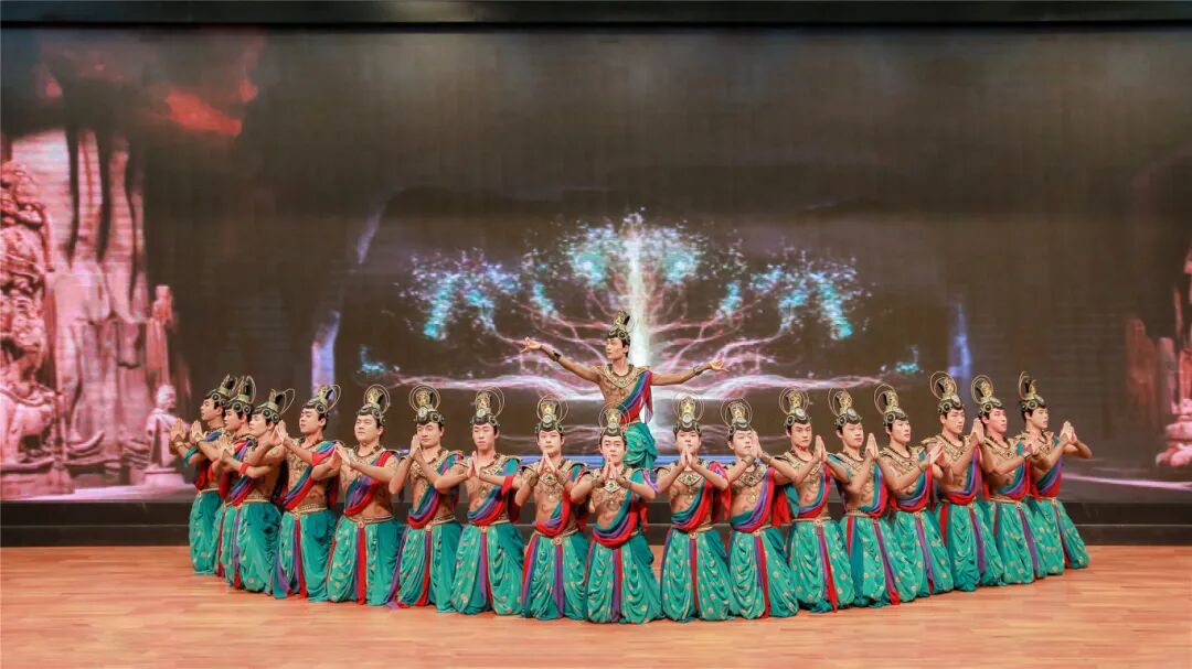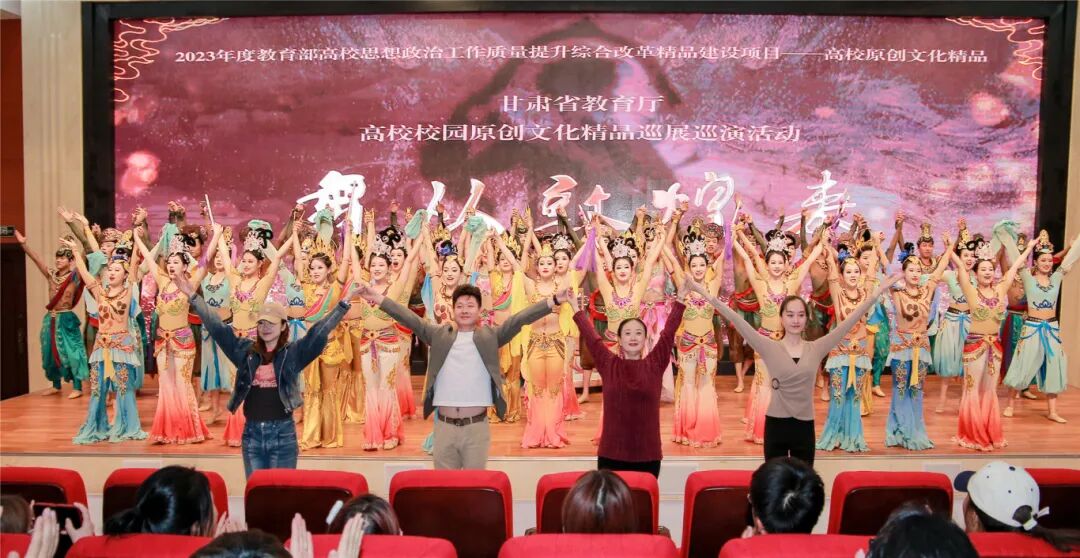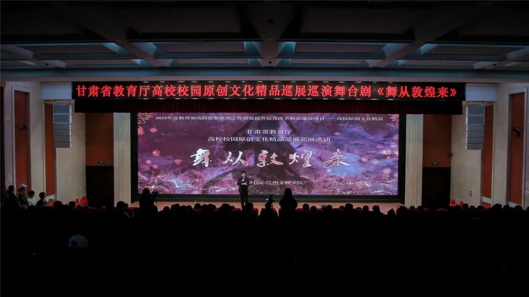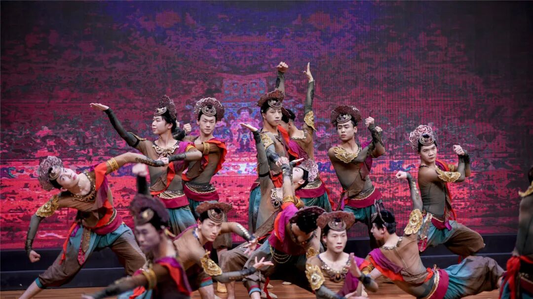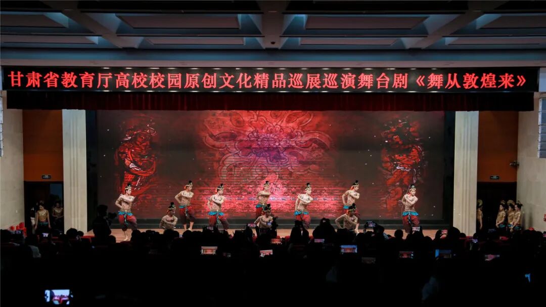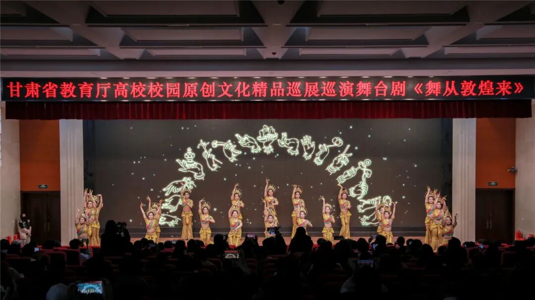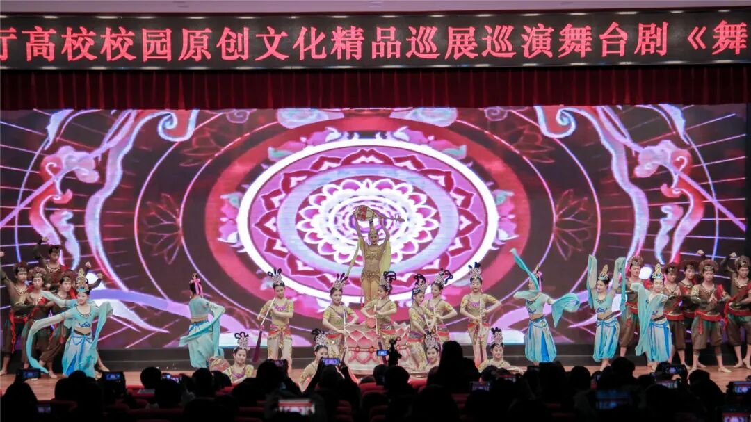 《舞从敦煌来》是我省唯一入选教育部2023年度高校思想政治工作质量提升综合改革与精品建设项目——高校原创文化精品的项目。作为一部深入挖掘敦煌文化内涵的原创舞台剧,作品巧妙地将敦煌壁画中的舞蹈元素与现代舞台艺术相结合,展现了一幅幅生动而富有诗意的敦煌舞蹈画卷。