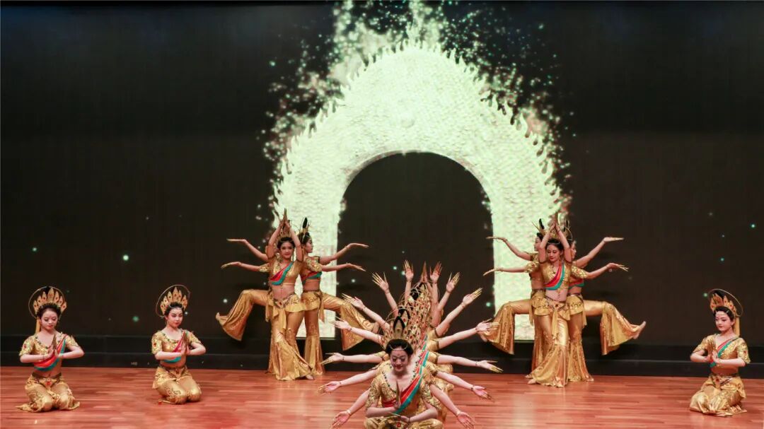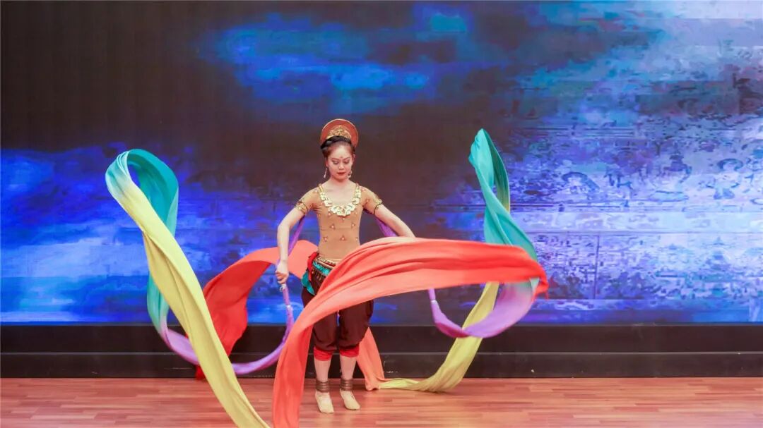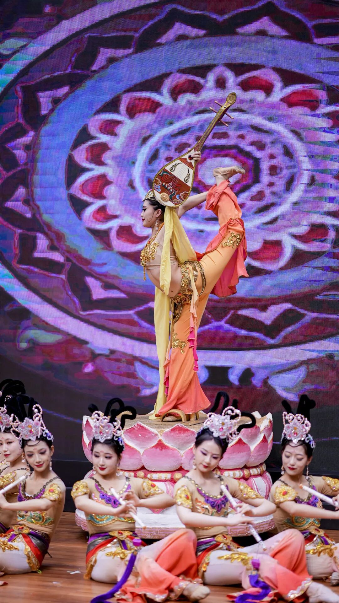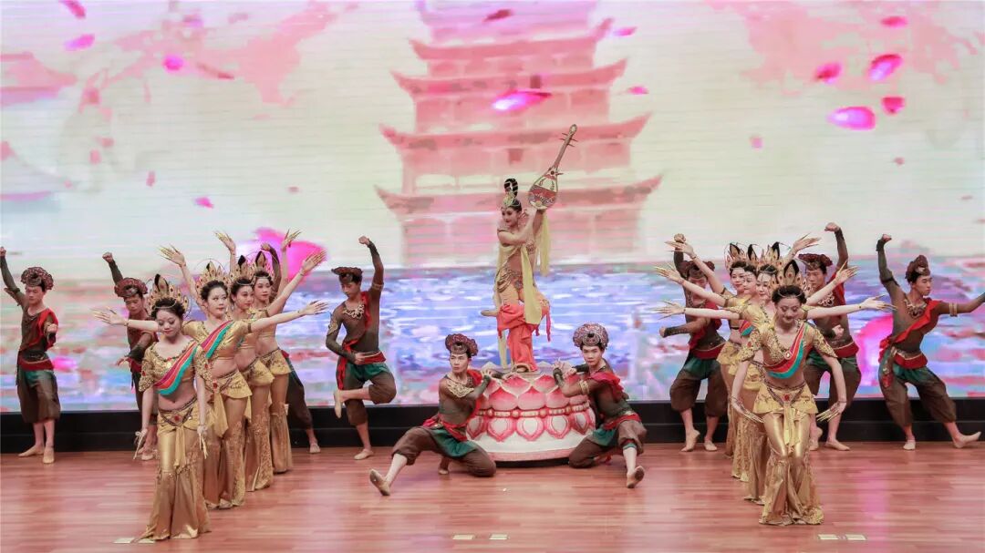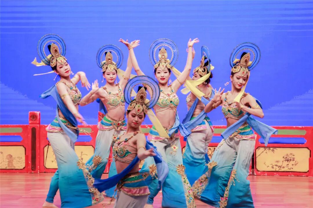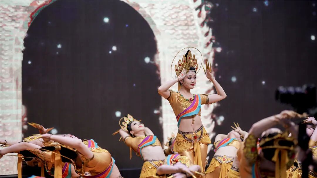 《舞从敦煌来》是我省唯一入选教育部2023年度高校思想政治工作质量提升综合改革与精品建设项目——高校原创文化精品的项目。作为一部深入挖掘敦煌文化内涵的原创舞台剧,作品巧妙地将敦煌壁画中的舞蹈元素与现代舞台艺术相结合,展现了一幅幅生动而富有诗意的敦煌舞蹈画卷。