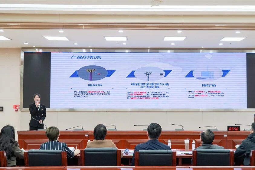 本届大赛由学校创新创业中心主办,临床护理学院、中医药学院、医学技术学院等部门协办。经过各学院初评,大赛共收到361件参赛作品,推荐决赛参赛作品37件,作品质量显著提高。经今年3月校赛小组赛角逐,共有12件作品进入了最终的决赛环节。