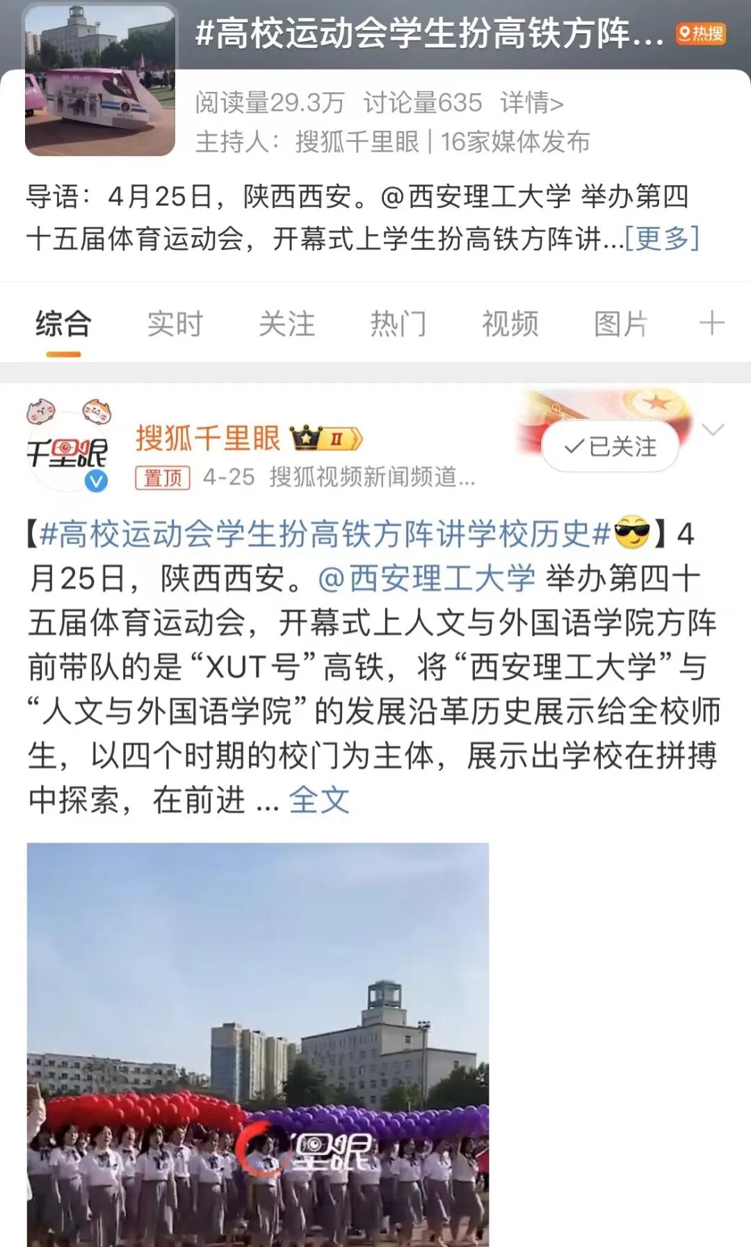 #高校运动会学生扮高铁方阵讲学校历史#