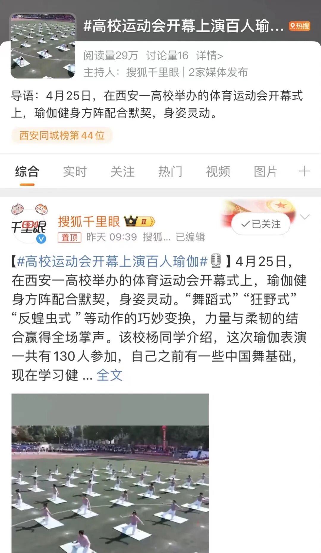 #高校运动会开幕上演百人瑜伽#