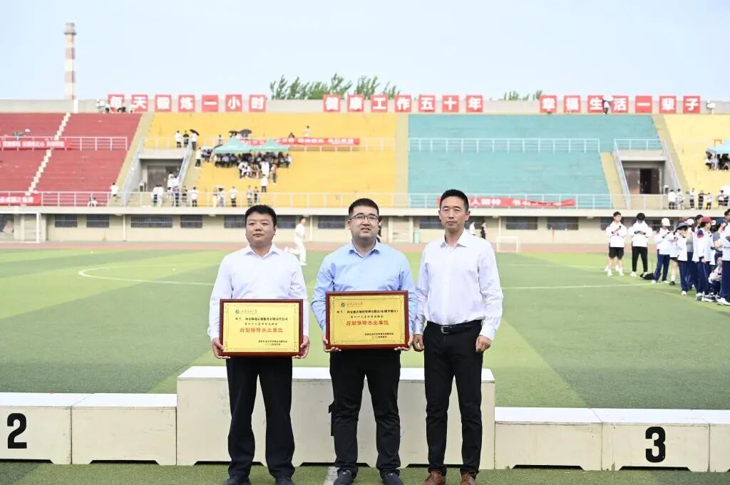 闭幕式上,张木为获得体育道德风尚奖和男女团体前三名的单位颁奖,张君涛为获得团体总分前六名的单位颁奖。体育学院负责人为获得后勤保障杰出贡献奖的西安德青餐饮公司和西安师苑公司颁奖。