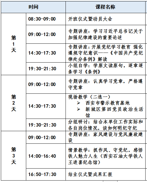 西安石油大学培训基地针对新时期干部教育培训工作的新任务、新特点、新要求,聚焦党史党建类、经济发展类、科技类、能力素质类、红色+业务类、技术类热点需求开设课程。在教学过程中,积极探索沉浸式教学方法,加大破冰演练、微论坛、结构化研讨、桌面推演等互动式教学比重,强化现场实践教学力度,积极探索举办学员论坛。培训全过程录入系统,实施精细化标准化管理;注重信息反馈,持续完善评价体系;不定期开展多种形式的学员回访,不断提高培训的针对性和有效性。