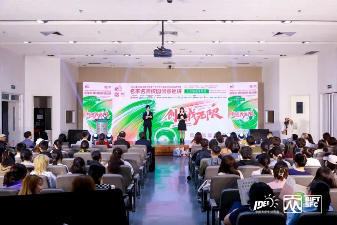 4月25日,第16届全国大学生广告艺术大赛(以下简称“大广赛”)北京赛区启动式暨名家名师校园创意巡讲在北京服装学院樱花园校区艺术楼二层报告厅举行。中国高等教育学会广告教育专业委员会副理事长、北京服装学院院长贾荣林和中国高等教育学会广告教育专业委员会副秘书⻓、大广赛全国组委会副秘书长王树良致辞。锝铯科技有限公司联合创始人、首席创意官薛振添以《AI变革下的脑洞复兴》为题作创意分享。中国高等教育学会广告教育专业委员会副秘书长、大广赛北京赛区负责人北京服装学院时尚传播学院执行院长谢平,党委书记王艳童,副院长李玮琦,党委副书记贾士齐,大广赛北京赛区组委会秘书长、广告学系主任周易军,北京赛区联系人马千里与七个命题企业代表,以及首都近20所高校300余名师生参加。