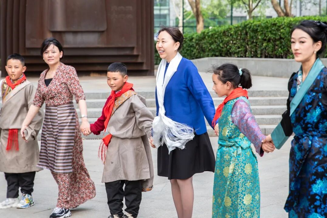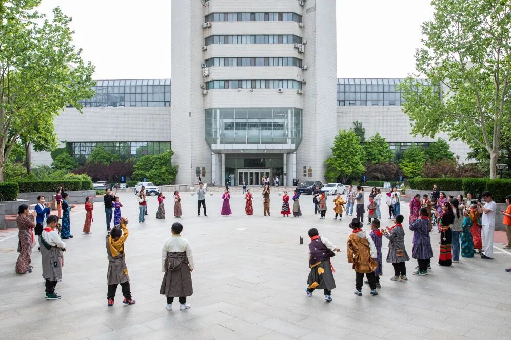 随后同学们在老师们的带领下移步校园中山装广场,由藏区小朋友们为大家展示民族特色歌舞。同学们的表演引来阵阵欢呼,大家都沉浸在热情洋溢的氛围中。最后全体师生一同手拉手共跳锅庄舞,为今日活动画上圆满句号。