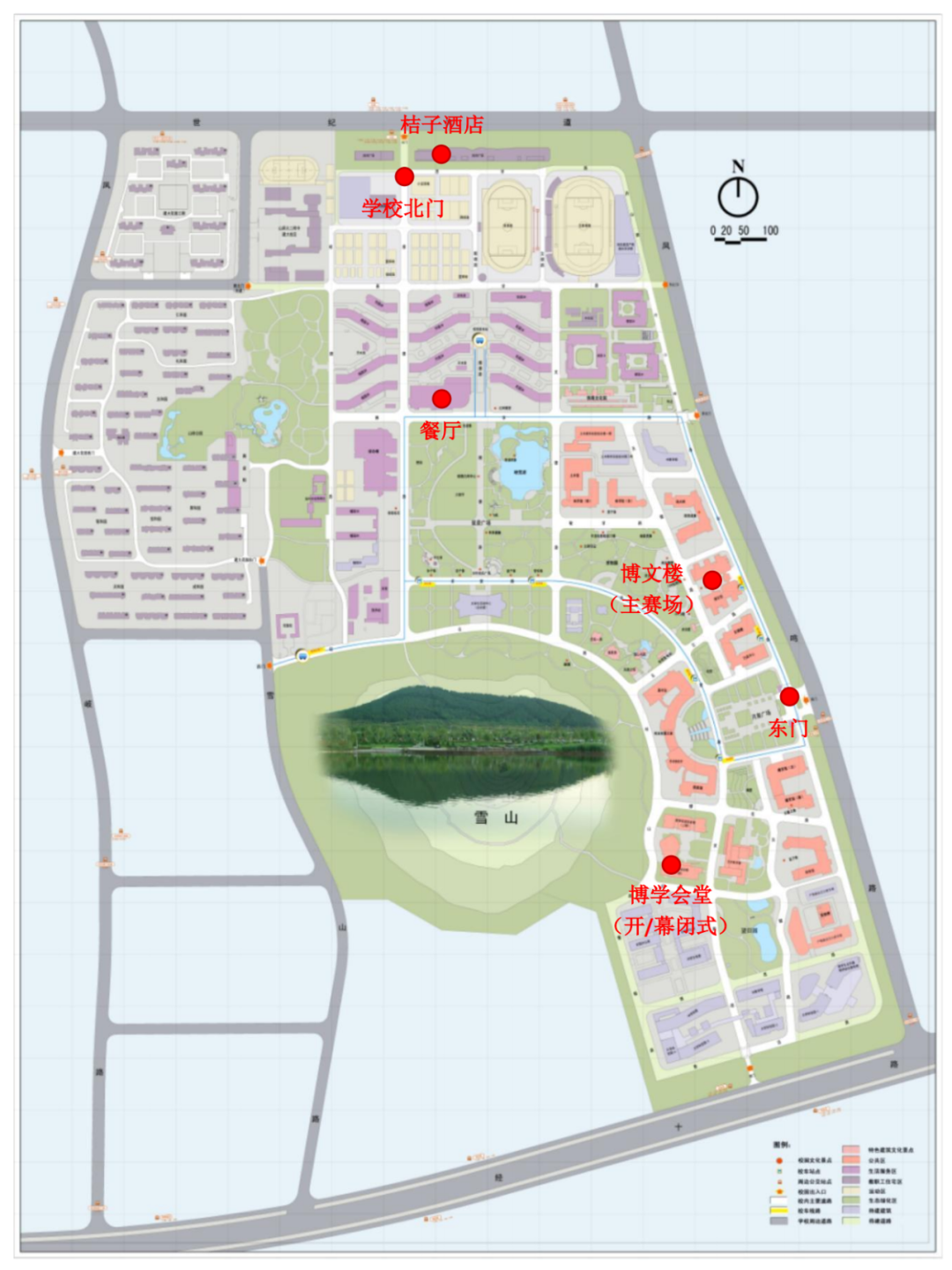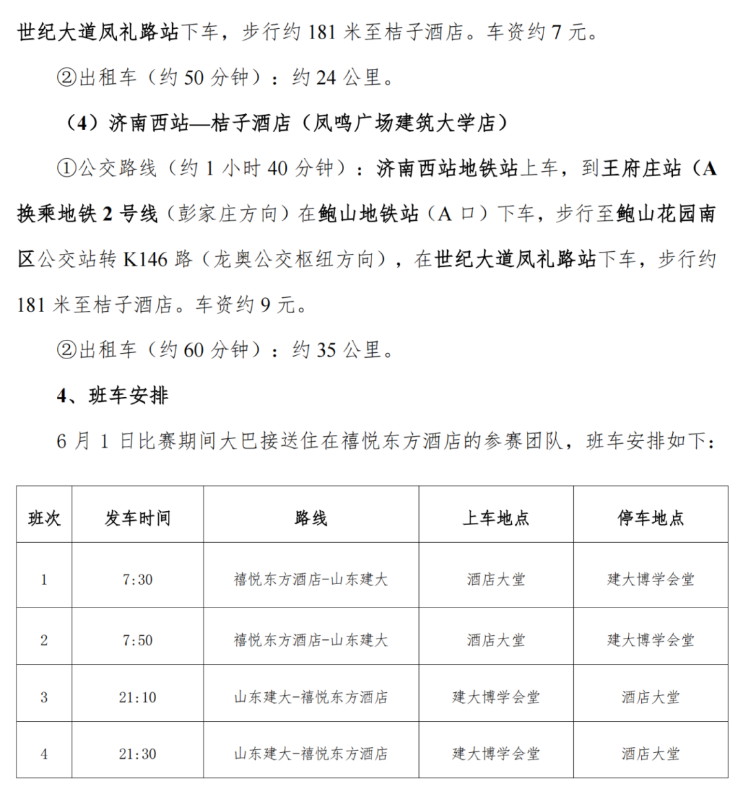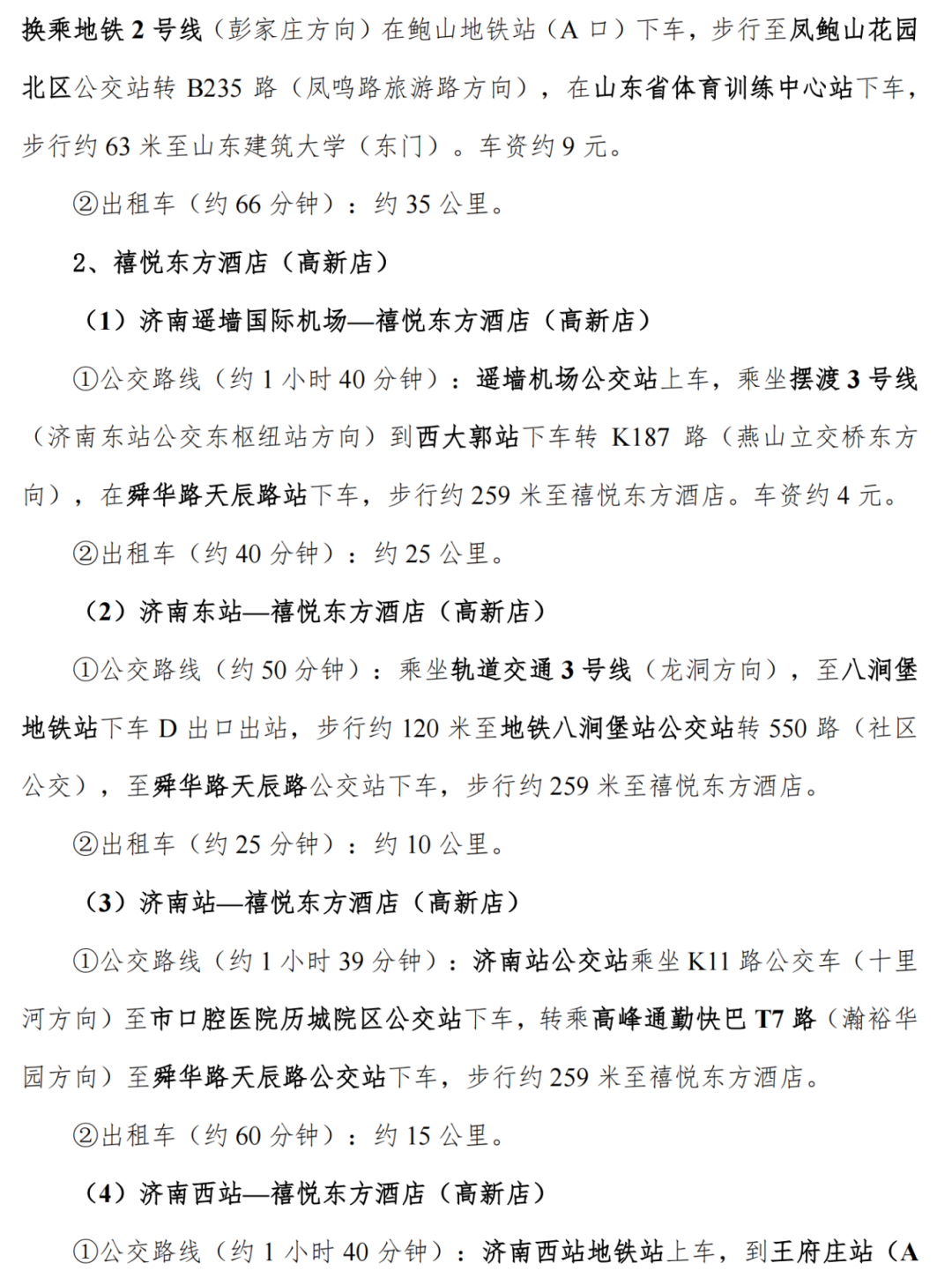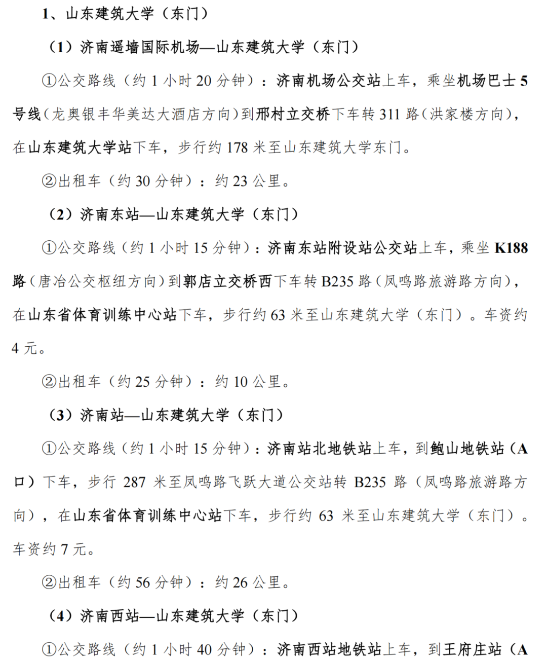 除桔子酒店从山东建筑大学北门进入校园,其他酒店均建议从山东建筑大学东门进入校园。