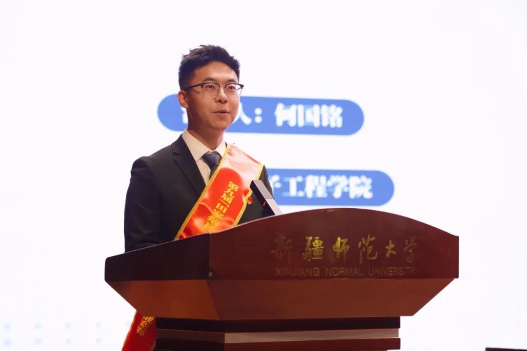 “创新、创意及创业”挑战赛获奖团队代表颁奖“新师学子奖章”获奖代表、美术学院刘晴晴,“三强班级”获奖代表、计算机科学技术学院贾广潮,第九届“田家炳杯”全国师范院校师范生教学技能竞赛获奖代表、物理与电子工程学院何国铭,第十三届全国大学生电子商务“创新、创意及创业”挑战赛获奖代表、教育科学学院王雯璐,第九届“互联网+”大学生创新创业大赛获奖代表、化学化工学院王诗茵在会上发言。2022-2023学年“新师学子奖章”获奖代表刘晴晴发言