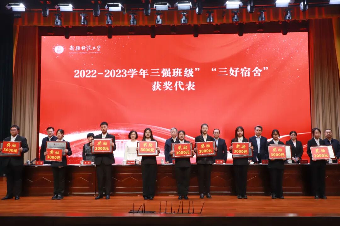 会上,刘俊作2022-2023学年学生工作报告,全面总结了2022-2023学年学生工作取得的成绩。报告指出,过去的一年里,学校始终坚持以习近平新时代中国特色社会主义思想为指导,落实立德树人根本任务,以铸牢中华民族共同体意识为主线,围绕学校“聚焦立德树人 建设一流师范”办学目标,持续深化“三强班级”“三好宿舍”创建,用“入心”的思政育人、“暖心”的成长护航、“用心”的管理服务、“贴心”的学工队伍,打造有温度的学生工作。刘俊表示,今后全校要继续坚持以习近平新时代中国特色社会主义思想为指导,深入贯彻落实习近平总书记关于铸牢中华民族共同体意识的重要论述,完整准确全面贯彻新时代党的治疆方略,围绕党委期盼、老师期待、学生向往,不断凝练大学生思想政治教育工作的广度、高度、深度、温度,不断引领学生向真、向善、向美、向上,为培养学生成长成才、推动学校教育事业高质量发展贡献应有智慧和力量。![]()