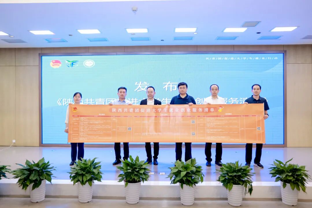 省青年就业中心主任王少平、省青年企业家协会会长张博、省青年电商联合会会长陈炳先、省农村青年致富带头人协会会长黄磊、省青年创业导师协会副会长金新康、省青年创业就业基金会秘书长刘华,6家单位负责人上台联袂发布《陕西共青团促进大学生就业创业服务清单》。