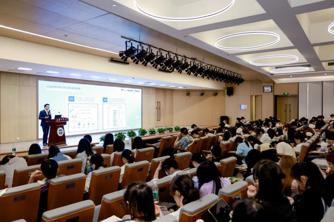 活动当天,在我校图书馆报告厅举办了中国青年就业大讲堂,邀请行业大咖专题解读当今就业形势与现状,帮助大学生树立良好就业观和择业观。来自高校领域的300余名大学生现场聆听。